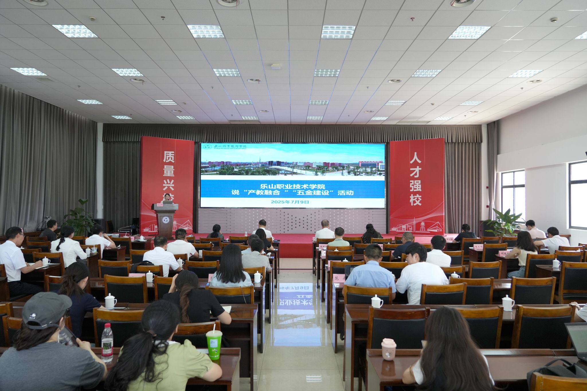 为深化产教融合,推动五金建设走深走实,学校于2025年7月9日在学术交流中心3004会议室开展说“产教融合”与“五金建设”活动。校长刘忠,党委副书记、工会主席张佳,党委委员、副校长周芹,党委委员、双高办主任王丽,相关职能部门负责人、各二级学院院长及副院长、专业带头人、教研室主任等参加了此次活动。活动由陈晓露主持。