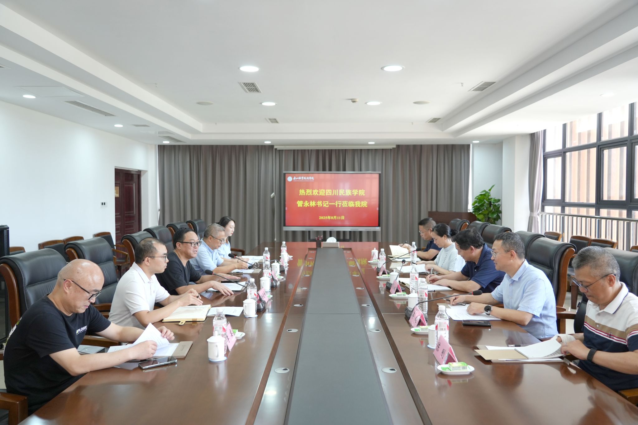 2025年8月11日,四川民族学院党委书记管永林一行莅临beat365,围绕新校园建设工作开展专题学习交流。党委书记成定彬,党委委员、副校长张学河及相关部门负责人陪同交流。