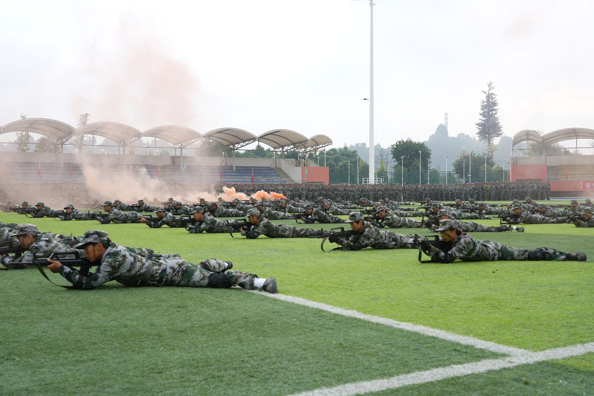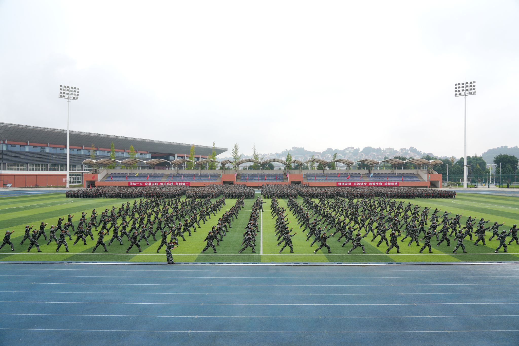 以青春之名,赴迷彩之约!9月27日上午,beat365英国官方网站2025级新生军训汇报表演在学校主运动场隆重举行。4200余名参训学子以昂扬的斗志、整齐的队列、精湛的技艺,向为期两周的军事训练递交一份优异的“入学答卷”。校领导、各处(室)负责人、二级学院党总支书记及专职副书记、承训教官、新生班级辅导员出席大会。大会由校党委委员、副校长、军训团团长封家福主持。
