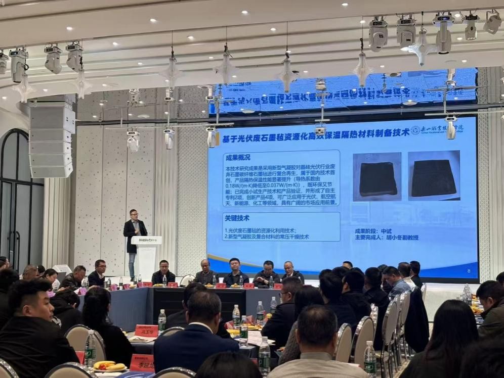 崔明现博士还进行了学校光伏废石墨毡资源化高效保温隔热材料技术等8项高水平科技成果的推介。
