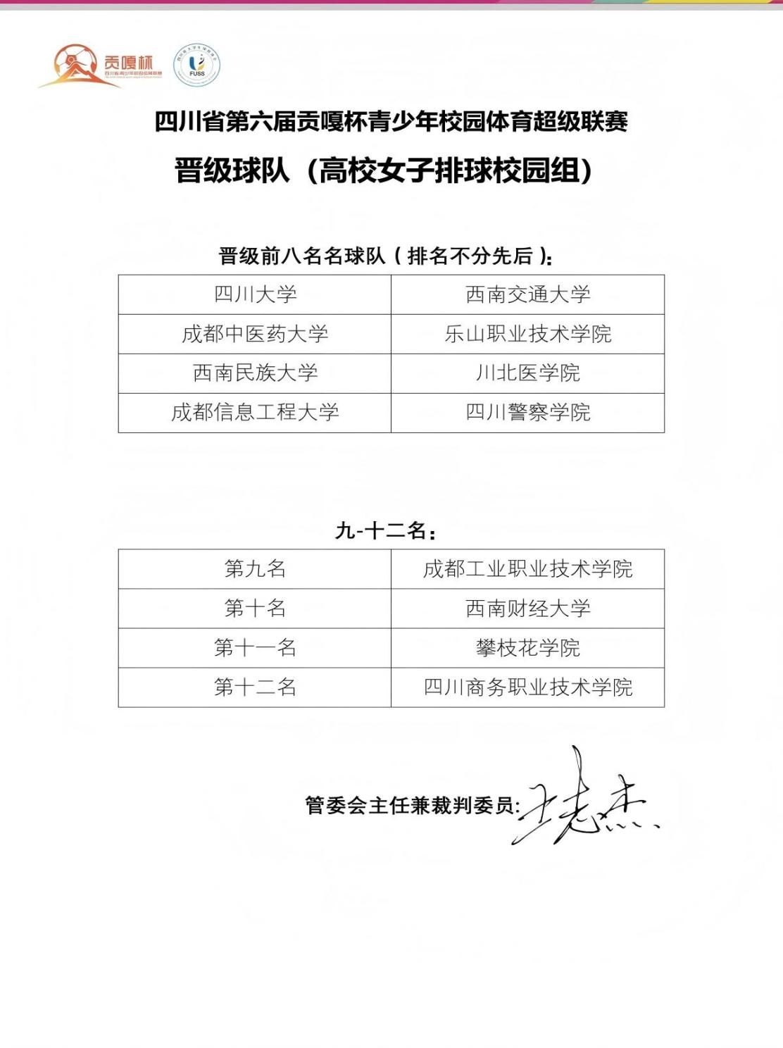 11月28日至12月2日,由四川省教育厅、四川省体育局、共青团四川省委主办,四川省大学生体育协会、四川省排球协会执行,成都信息工程大学承办的四川省第六届“贡嘎杯”青少年校园体育超级联赛(排球高校女子校园组)比赛在成都信息工程大学举行。beat365女子排球队由体育学院朱文彬担任领队,代伟、刘飞飞作为教练率队出征参加本次比赛并顺利挺进明年的决赛。