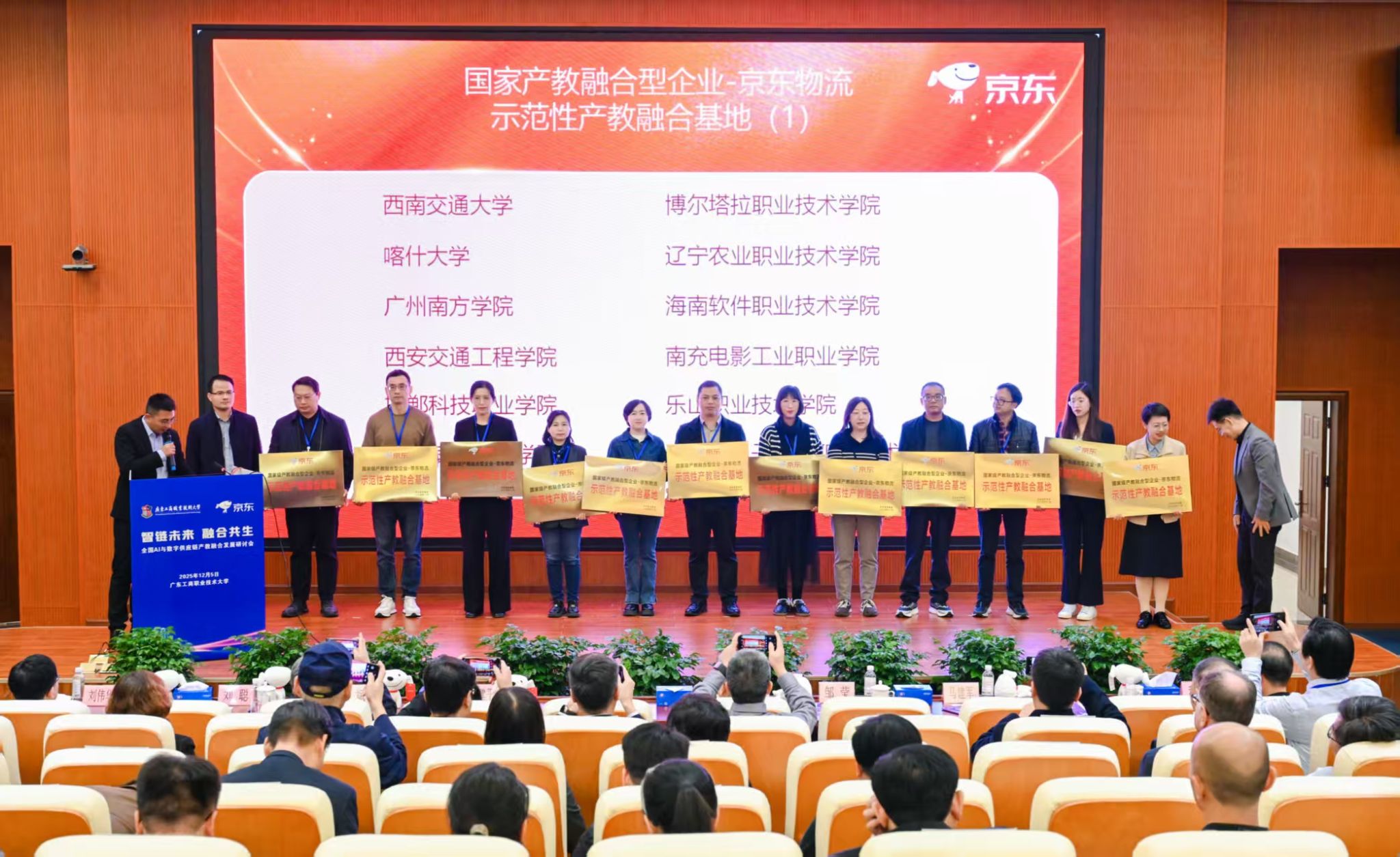 12月5日,由全国智能供应链产教融合共同体、京东集团联合主办的“AI与数字供应链产教融合发展研讨会”在广东工商职业技术大学顺利举行。学校京东数字商务产业学院被授予国家级产教融合型企业-京东物流“示范性产教融合基地”。