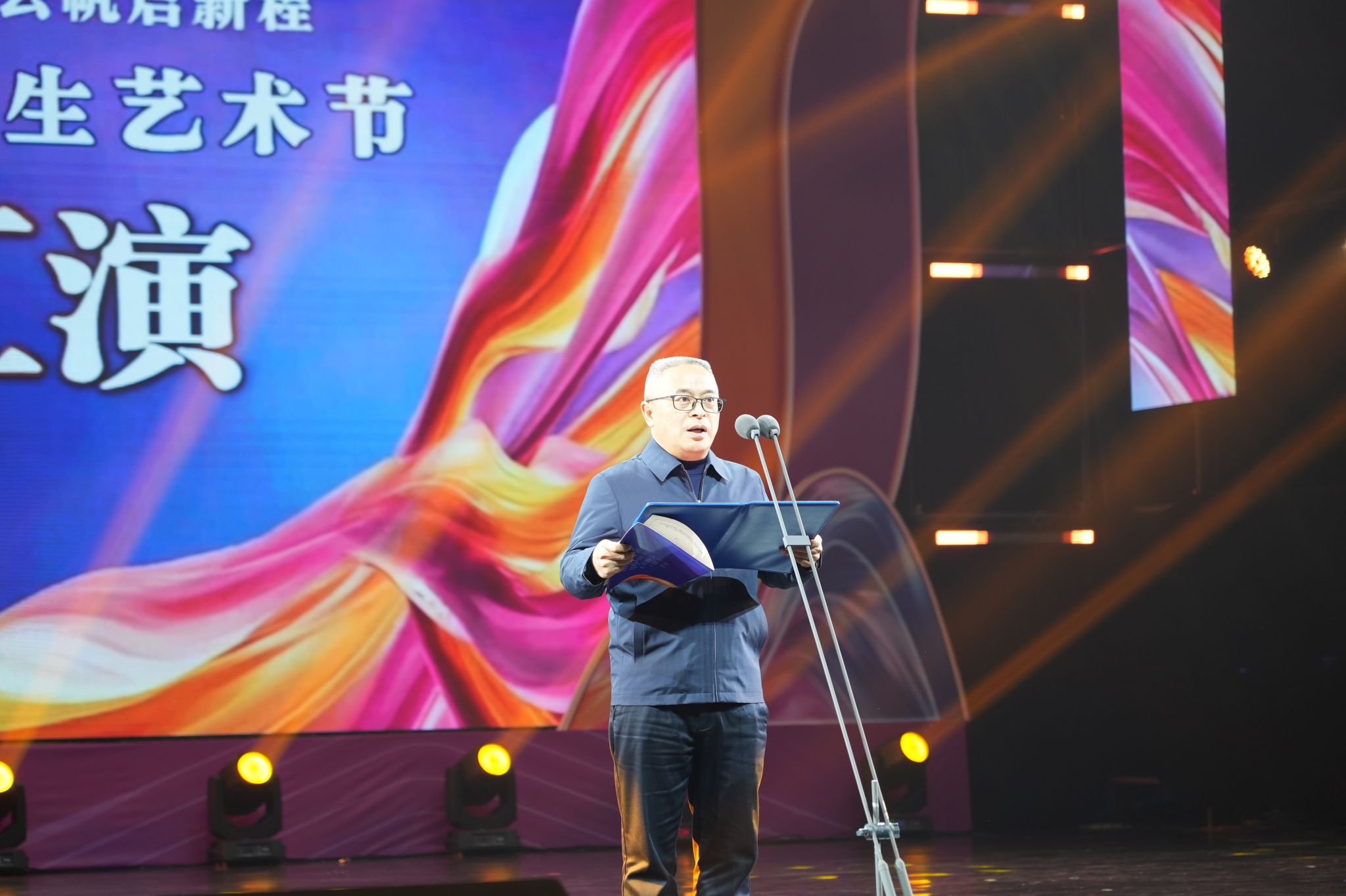 张学河代表学校致辞,本届艺术节以“墨韵”书写历史、以“薪火”照亮未来,恰逢中国人民抗日战争暨世界反法西斯战争胜利80周年,艺术成为精神传承的重要载体。要将艺术节的热情转化为学习创新的动力,将个人“青春梦”融入学校“强校梦”和民族“中国梦”。他表示,学校将持续推进美育浸润行动,完善“三全育人”体系,培养更多兼具艺术素养与家国情怀的高素质人才,让艺术之花在服务国家战略中绽放更绚丽的光彩。