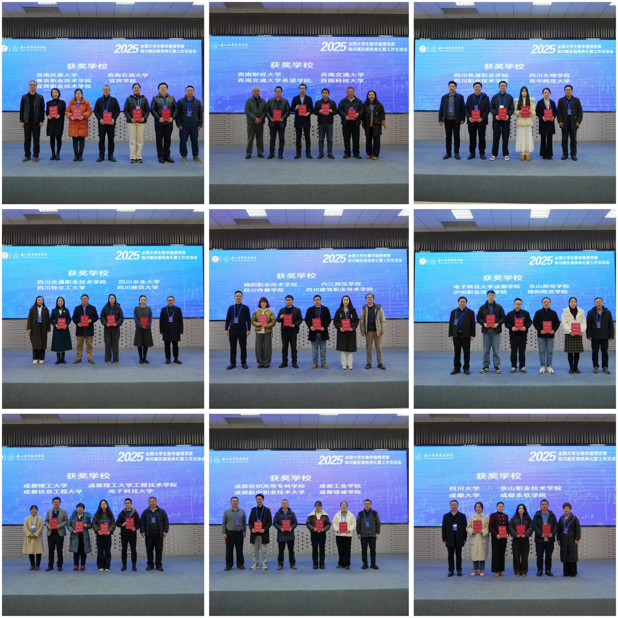 四川学子在2025年的数学建模大赛中再创新佳绩,在颁奖典礼上,四川大学、西南交通大学、电子科技大学、成都理工大学、beat365英国官方网站等在内的数十所高校代表依次登台领奖。颁奖嘉宾阵容强大,涵盖省内多所高校数学学科带头人和教育管理者,体现了全省高等教育界对数学建模育人价值的高度认同。