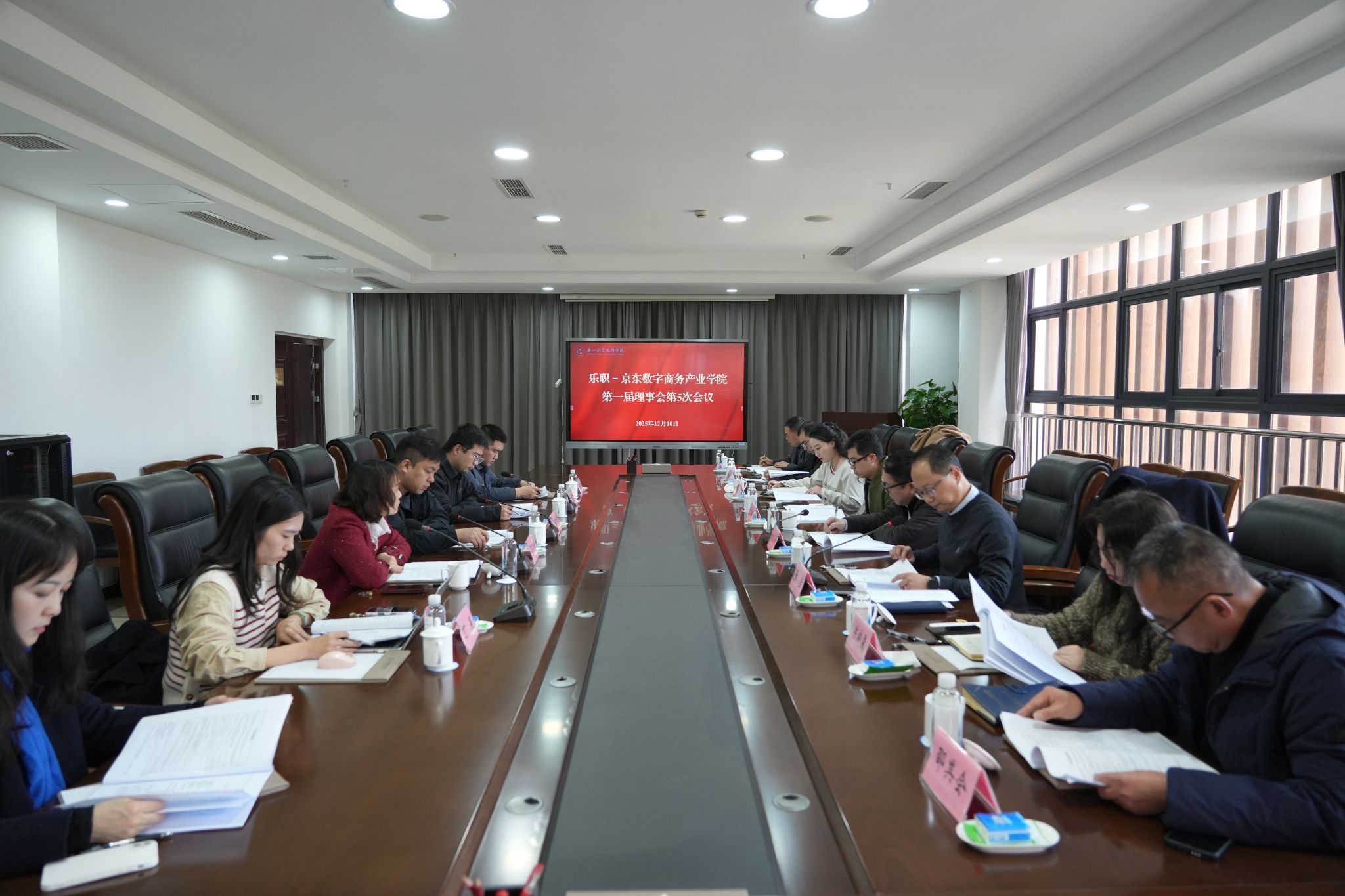 近日,乐职–京东数字商务产业学院(以下简称产业学院)在beat365英国官方网站学术交流中心2001会议室召开“第一届理事会第五次会议”。学校党委书记成定彬,党委副书记、工会主席张佳,京彩集团董事长张前程,江苏京东信息技术有限公司校企合作西南区负责人金星星,教务处、国资处、后勤处负责人,数字经济与管理学院、京东相关人员出席。会议由学校党委副书记、工会主席张佳主持。