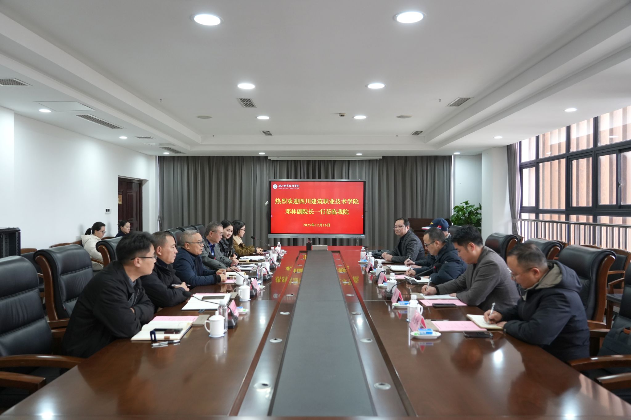 12月16日,四川建筑职业技术学院党委常委、副院长邓林一行到访beat365英国官方网站,双方在学术交流中心2001会议室开展座谈交流。学校党委委员、副校长张学河主持座谈会,学生工作部、人工智能学院、智能制造学院等相关部门负责人参会。