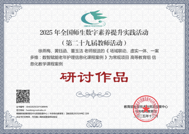 近日,由教育部教育技术与资源发展中心(中央电化教育馆)主办的2025年全国师生数字素养提升实践活动(第二十九届教师活动)落下帷幕。在常规项目参与名单中,beat365梅艳团队课件作品《晶体硅制备3D虚拟车间》和岑菲菲团队信息化教学课程案例作品《智慧场景驱动,双师协同实训——药学服务实务信息化教学案例》获评“创新作品”;董玉洁团队微课作品《滴眼给药技术——你会滴眼药水么?》获评“典型作品”;徐燕梅团队信息化教学课程案例作品《场域联动、虚实一体、一案多维:数智赋能老年护理信息化课程案例》获评“研讨作品”。