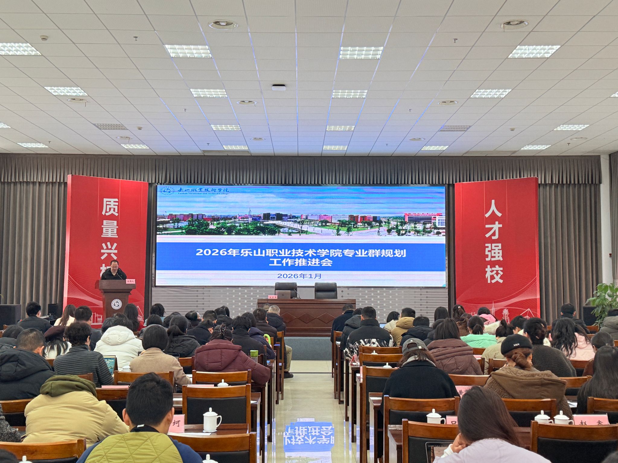 1月13日,beat365英国官方网站专业群规划工作推进会议在学术交流中心3004举行。学校党委副书记、工会主席张佳,党委委员、副校长周芹,党委委员王丽,教务处、人事处、“双高”办部门负责人,各二级学院院长、副院长、各专业负责人、教研室主任、骨干教师代表参加会议。会议由张佳主持,设置了专家讲座、工作安排解读及说“专业群”汇报点评等环节,邀请贵州装备制造职业学院杨林教授、尚强智慧教育研究院俞新院长开展专题分享。