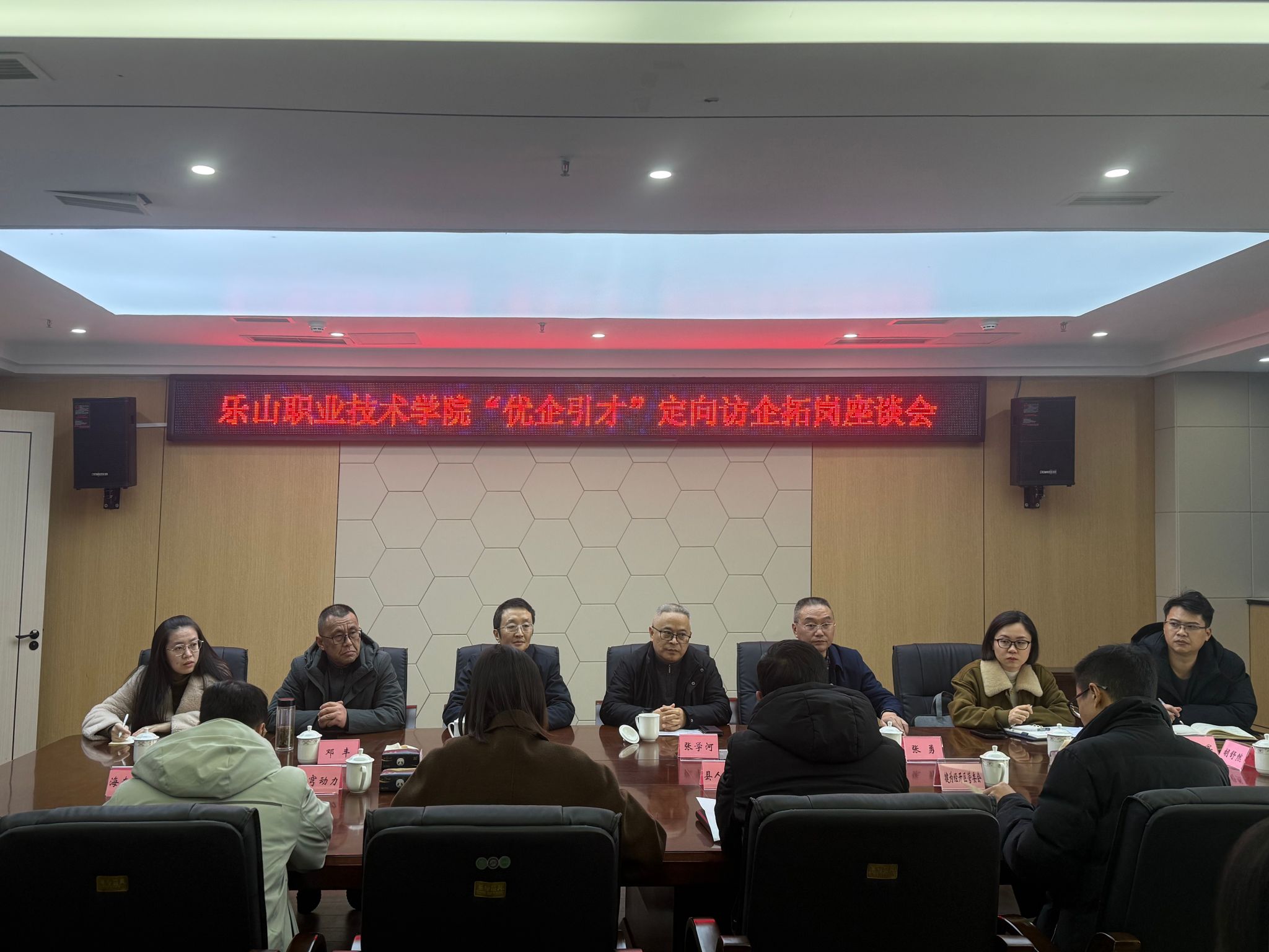 随后,校地企座谈会在犍为县经开区管委会召开。调研团队与企业围绕校地企合作、人才供需对接、产学研协同创新等方面展开深入交流。犍为县人社局副局长喻强提醒当前就业形势严峻,建议学校尽早强化学生就业观教育。张学河副校长提出三点人才培养举措:抓实实习环节、深化订单班培养、拓展产学研合作,构建校企协同育人机制。