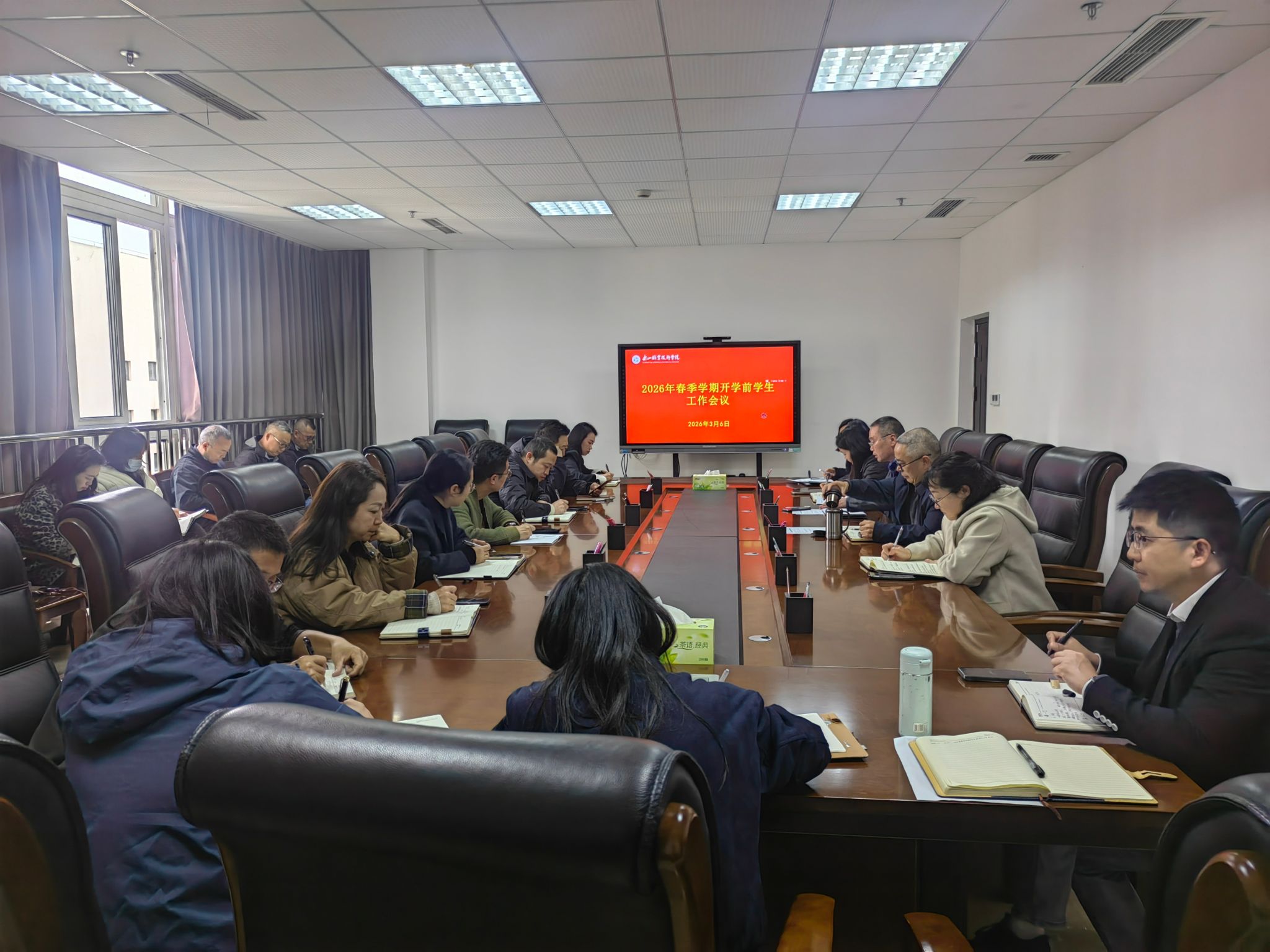 会议强调,要严格落实学生报到注册、正式行课的开学时序安排,从严执行学生返校请假报备、境外学生入境报备等制度。要层层压实学工部、各二级学院、辅导员工作职责,健全学生返校动态台账,落实返校情况每日报送要求,抓实校园安全隐患全面排查。要高质量组织开学第一次主题班会,全覆盖开展学生谈心谈话。要健全重点学生动态管理机制,精准做好学业、心理、经济困难学生的帮扶工作,以清单化、具体化的举措推动开学各项工作落地落细,确保新学期学生工作安全、有序、平稳推进。