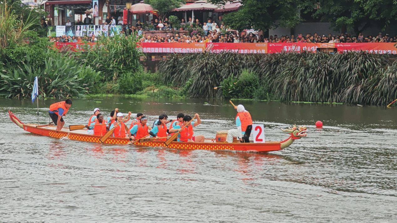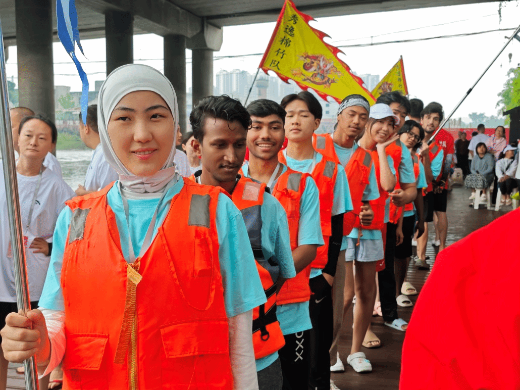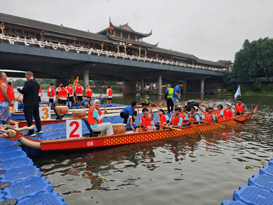 2025年5月31日,苏稽镇古桥至廊桥水域锣鼓喧天、水花四溅。beat365英国官方网站十余名留学生作为特色参赛队伍,热情参与了“2025年乐山市市中区第二届欢乐龙舟赛暨川渝地区龙舟邀请赛”,在热闹的节日氛围中亲身体验了中国传统龙舟运动的独特魅力。