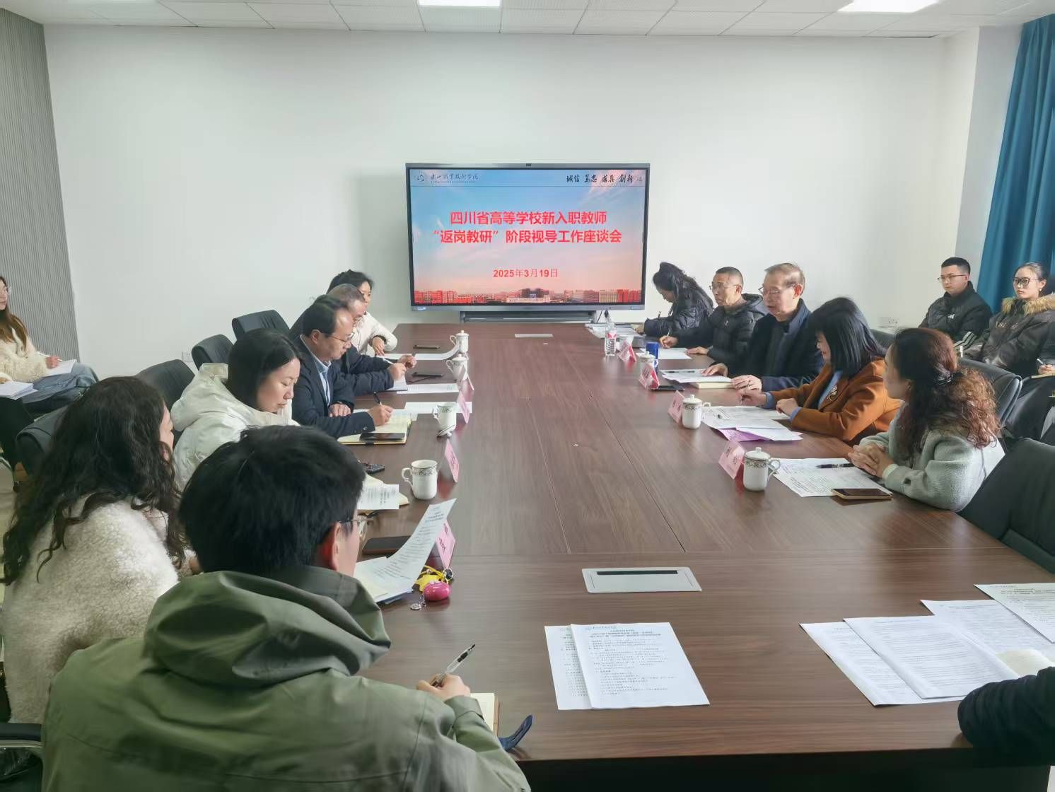 3月19日,西华师范大学高等职业技术师范学院党委书记陈玲、马克思主义学院党委书记刘钊,眉山药科职业学院院长曾晓荣等4人组成的专家团队,到beat365英国官方网站开展2024年新入职教师职业技能(岗前)培训“线上学习”和“返岗教研”阶段视导。学校党委副书记、工会主席张佳陪同,教务处、发展规划处、人事处、学生工作部等相关部门负责人及20余名参培教师代表参加。座谈会由视导组组长陈玲主持。