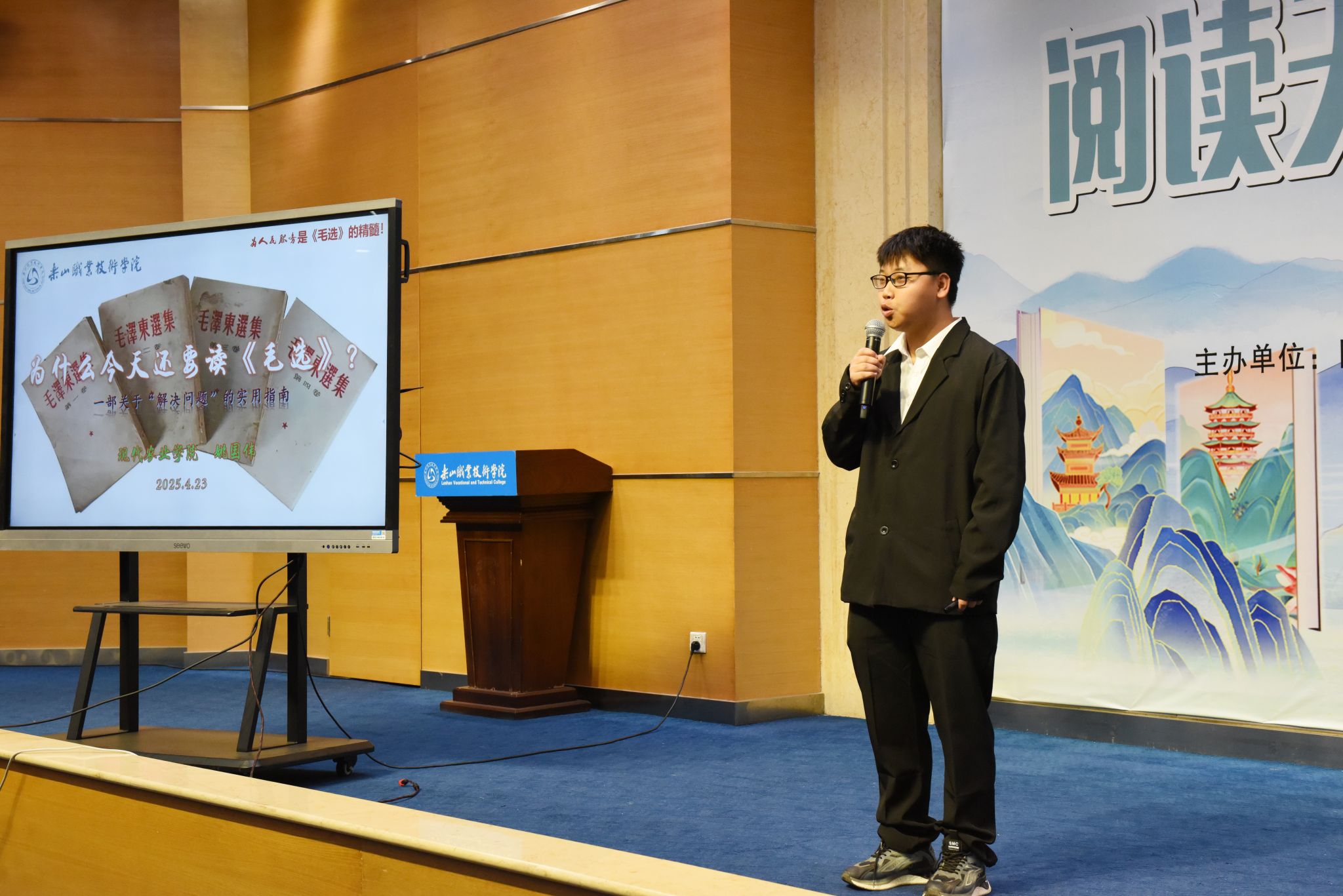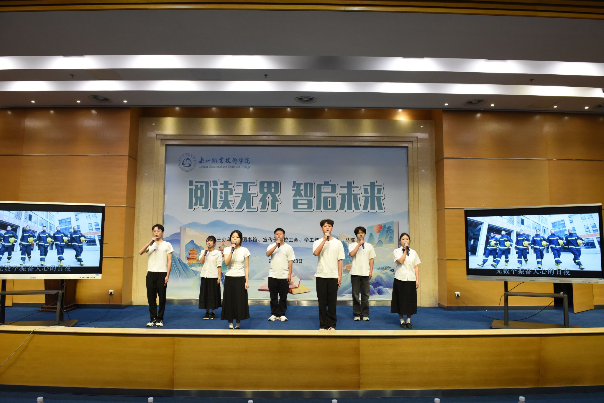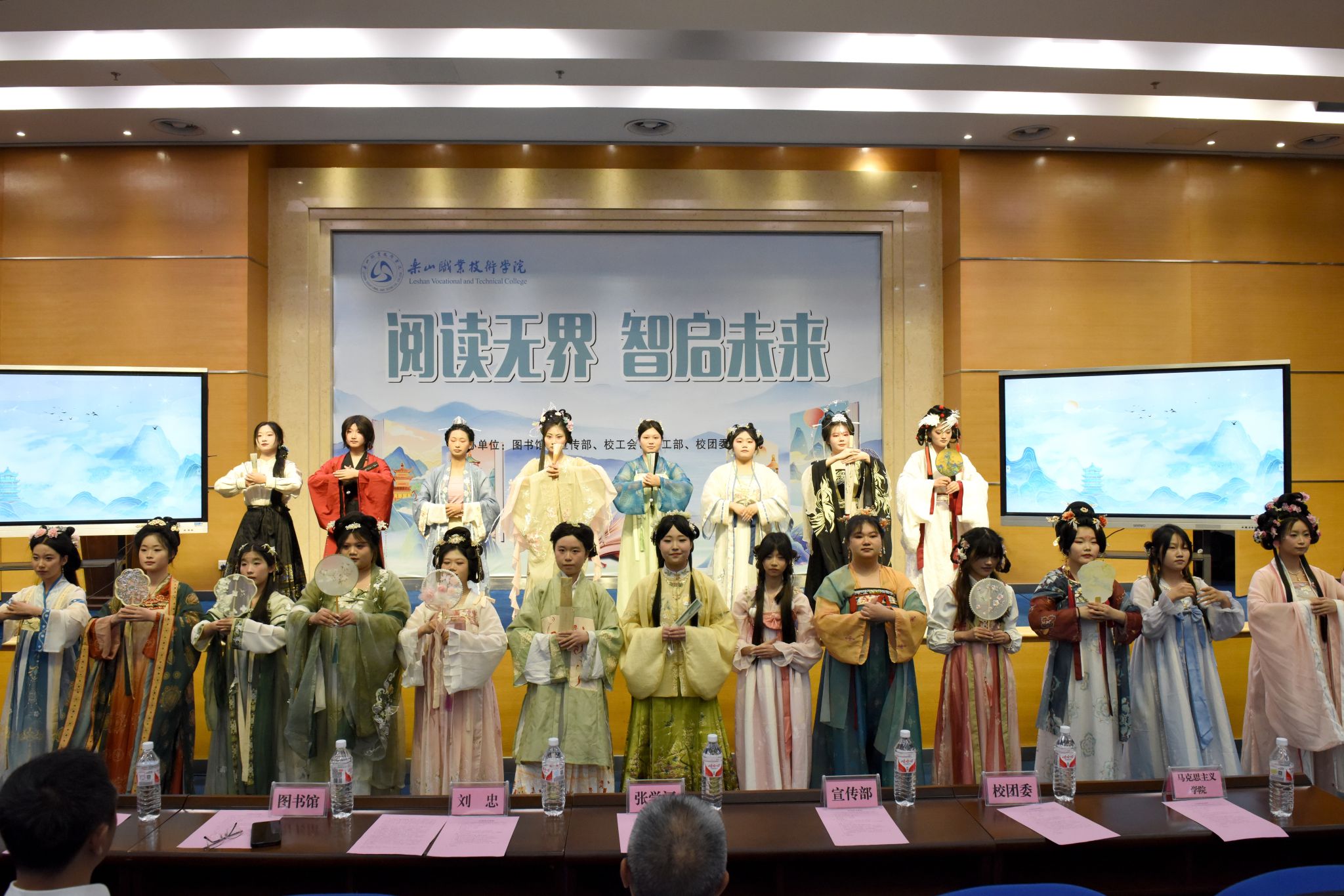 活动现场,刘忠、张学河为第三届“阅读之星”王茂嶙、吴胜香颁发了证书。张学河为同学们荐书《积极干预心理书系》,让在座的师生了解了积极心理学的上医治未病理念。李娟老师系统解读了“十四五”期间图书馆馆藏资源建设成果。杨瑜双老师解析《在文化溯源中读懂“何以中国”》的文化密码,缪懿老师以新视角解读《东坡志林》。米易然同学的《我从未如此眷恋人间》让在座的观众感受到人间值得,万物可爱,姚国伟同学结合身边的小事解读了如何学好《毛泽东选集》,同学们还带来了《阅读有光》合唱、《这盛世如您所愿》诗词朗诵、汉服走秀串联等节目。启动仪式突破传统模式,巧妙融合学术报告、艺术展演与科技元素,彰显了“以文化人”的教育理念,展现了人工智能时代阅读推广的无限可能。当古籍典册遇见数字技术,当传统汉服邂逅现代设计,beat365英国官方网站正以创新姿态书写新时代职业院校文化育人的精彩篇章。