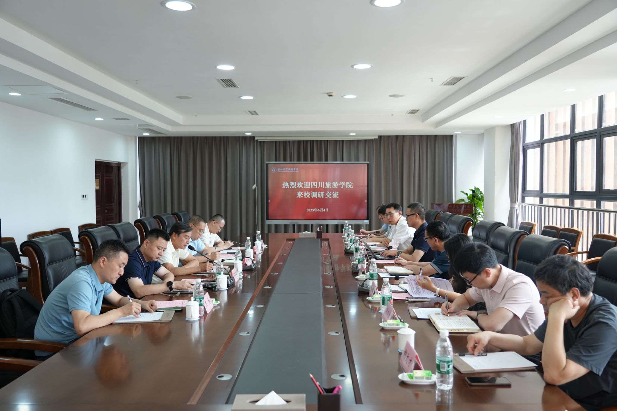 6月4日,四川旅游学院烹饪与食品科学工程学院院长李想等一行来校调研,调研座谈会在学术交流中心2001举行,学校党委书记成定彬,党委委员,副校长周芹出席会议。