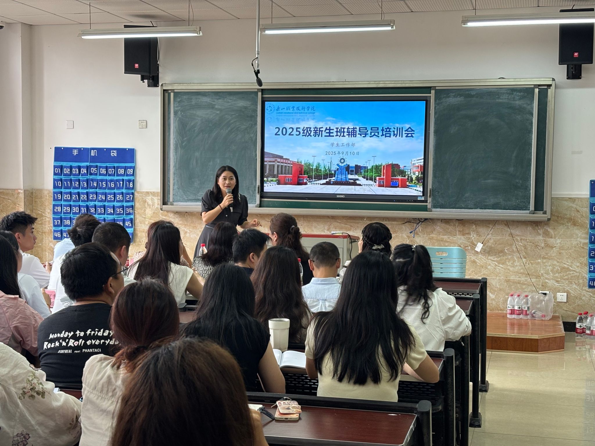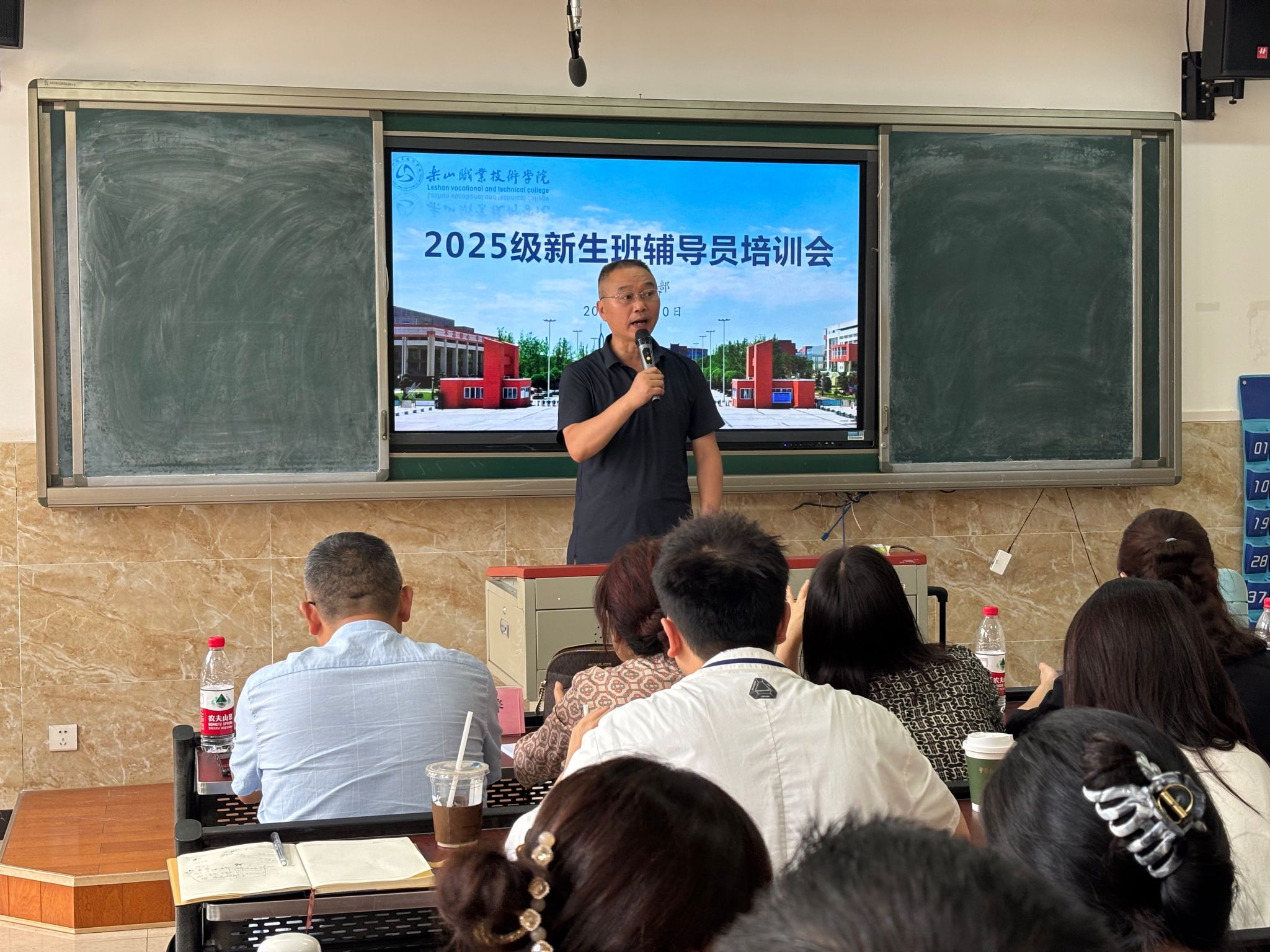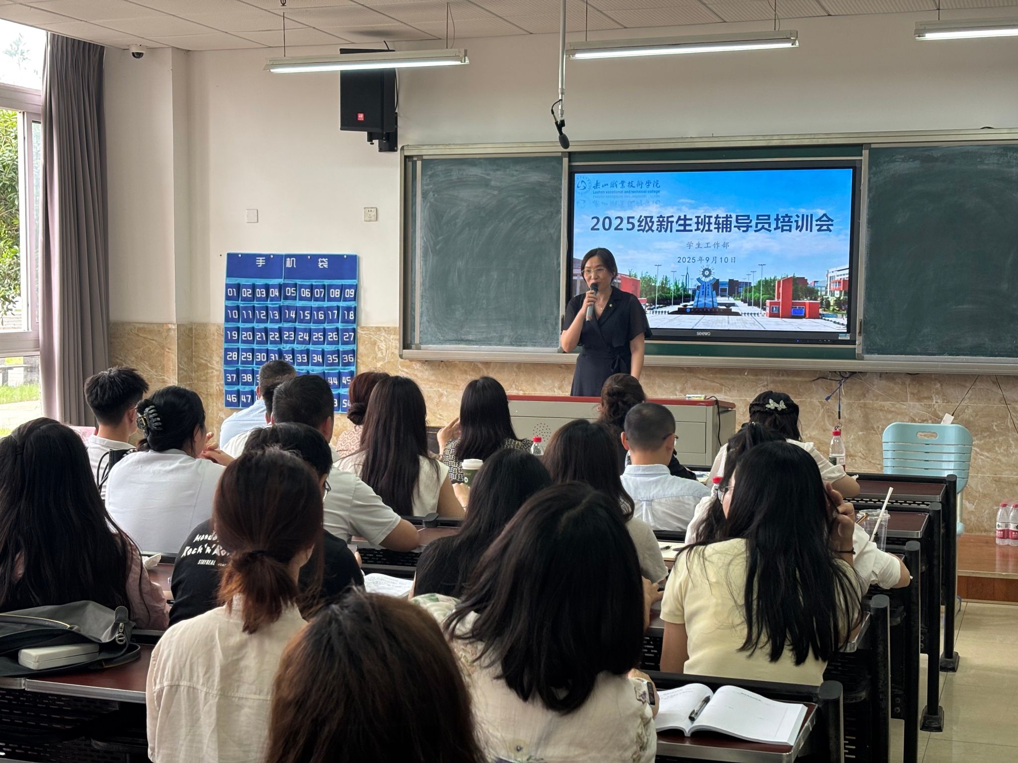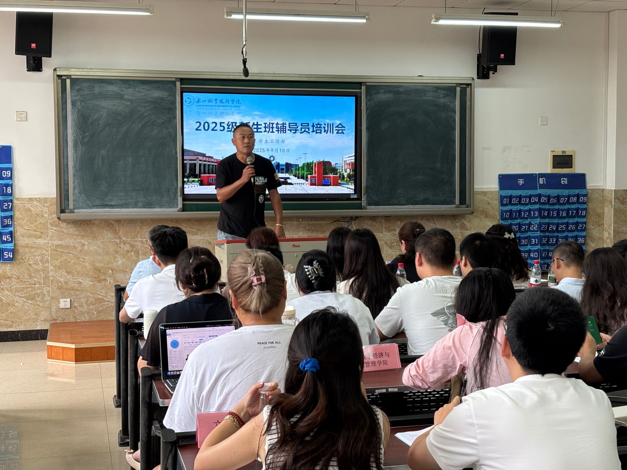 为切实加强新生辅导员队伍建设,帮助新入职辅导员尽快熟悉岗位职责、掌握科学工作方法、全面提升业务能力与专业素养,打造一支高素质、专业化、充满活力的辅导员团队,以保障2025级新生教育、管理与服务工作能够平稳、有序、高效开展,9月10日,学生工作部在教学楼1B104组织开展了2025级新生辅导员业务能力专题培训。2025级全体专兼职新生辅导员共计60余人参加本次培训。本次培训内容详实,紧扣实际,针对性极强,旨在通过系统学习与交流,赋能新生辅导员团队。