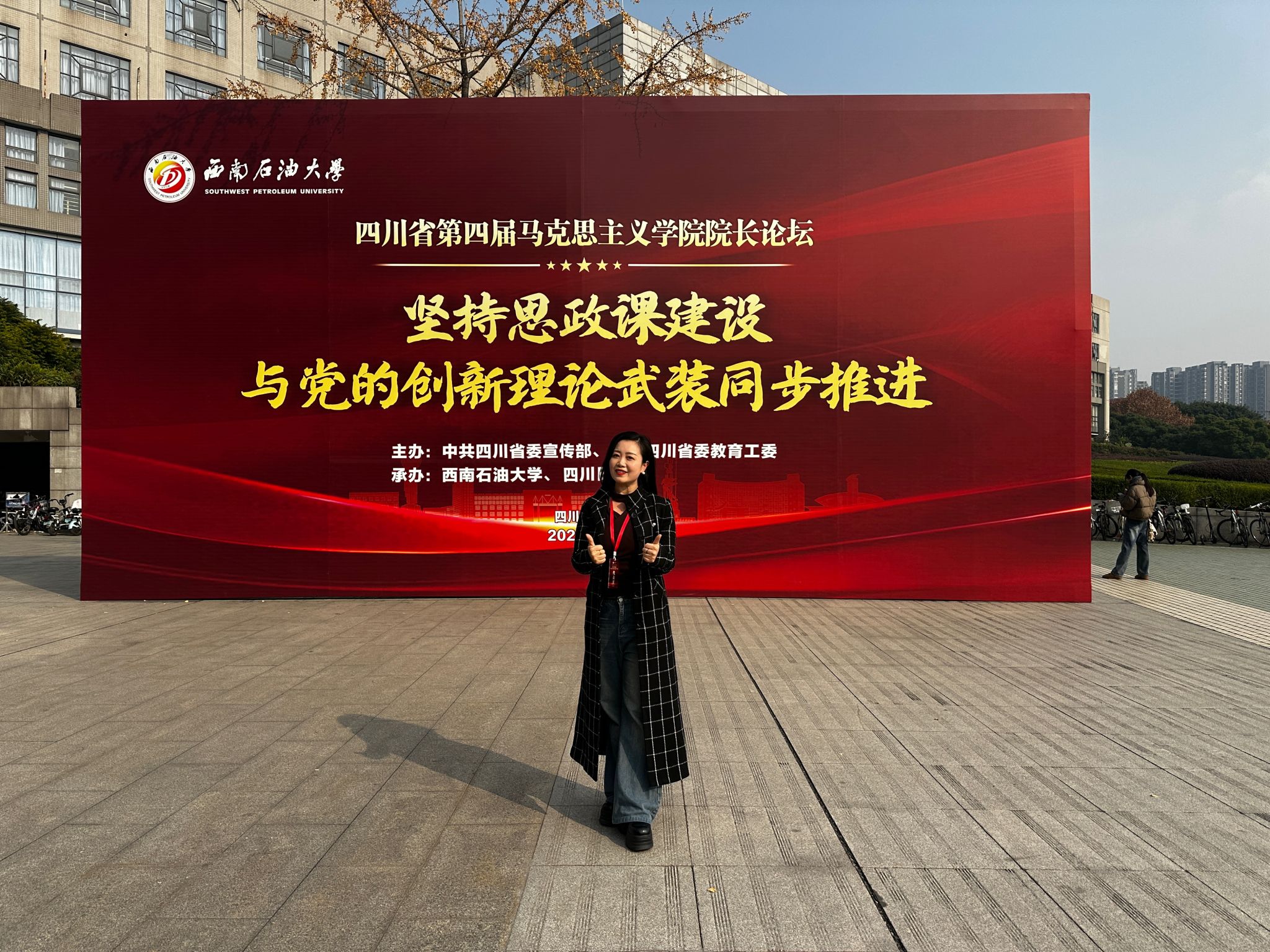 近日,四川省第四届马克思主义学院院长论坛在成都开幕。本届论坛由省委宣传部、省委教育工委主办,西南石油大学、四川日报社承办。来自全国的知名专家学者与省内外高校、党校以及社科研究机构马克思主义学院(思政教研部)的相关负责人,聚焦“坚持思政课建设与党的创新理论武装同步推进”主题开展理论研讨和交流。beat365英国官方网站马克思主义学院副院长刘倩参加了本次院长论坛教育活动。