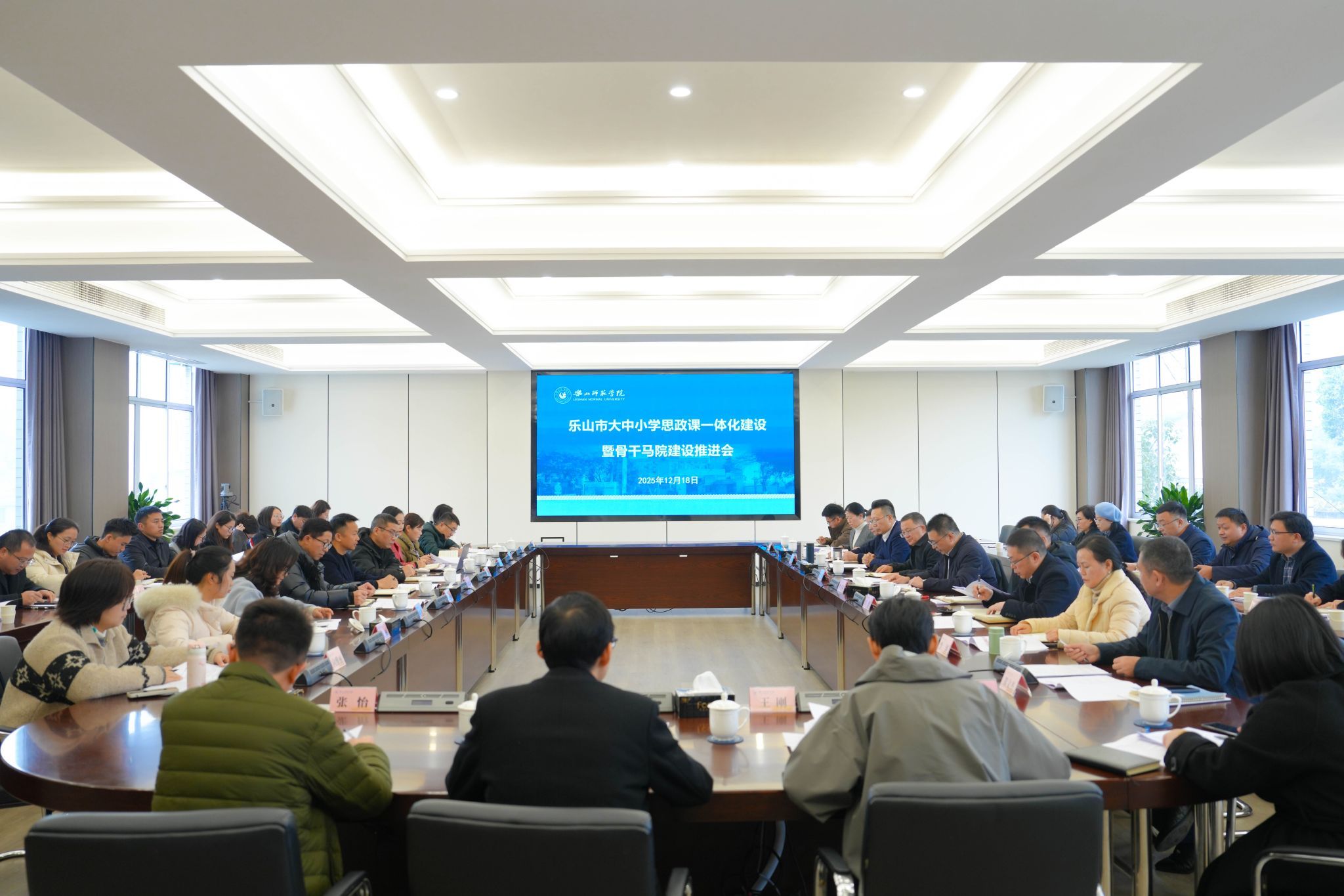 近日,乐山市大中小学思政课一体化建设暨骨干马院建设推进会在乐山师范学院召开。全市大中小学思政课一体化共同体成员单位、教育主管部门及相关院校领导围绕思政课共建共享、协同育人展开深入交流。马克思主义学院副院长刘倩、思政教师向雅丽参会。