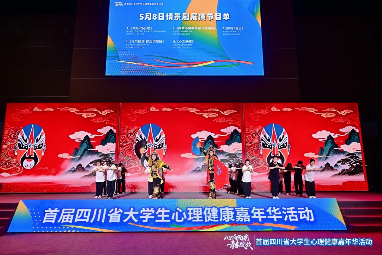 5月8日,由四川省教育厅、共青团四川省委主办的首届四川省大学生心理健康嘉年华活动在西南交通大学圆满举行。本次活动汇聚全省95所高校,涵盖心理健康教育典型案例展示、互动体验、专家咨询、创意展览及心理情景剧展演五大板块,全方位展现全省高校心理健康教育的创新成果。