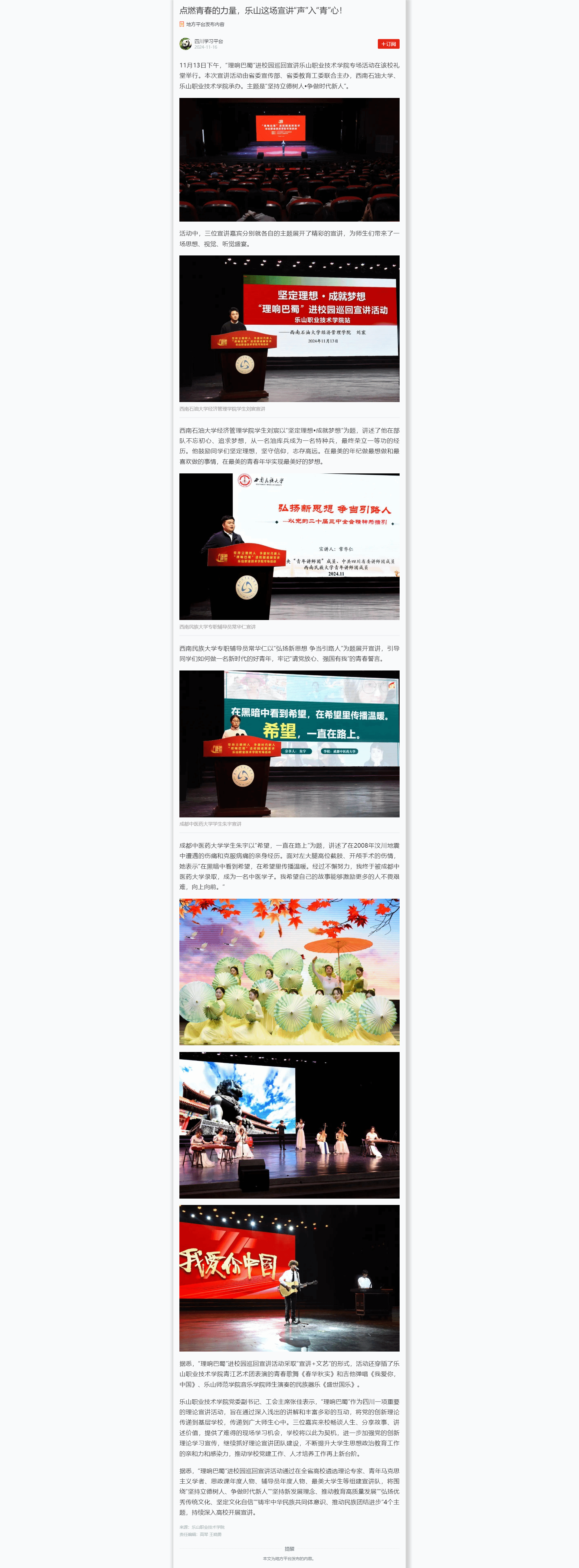 学习强国:点燃青春的力量,乐山这场宣讲“声”入“青”心!