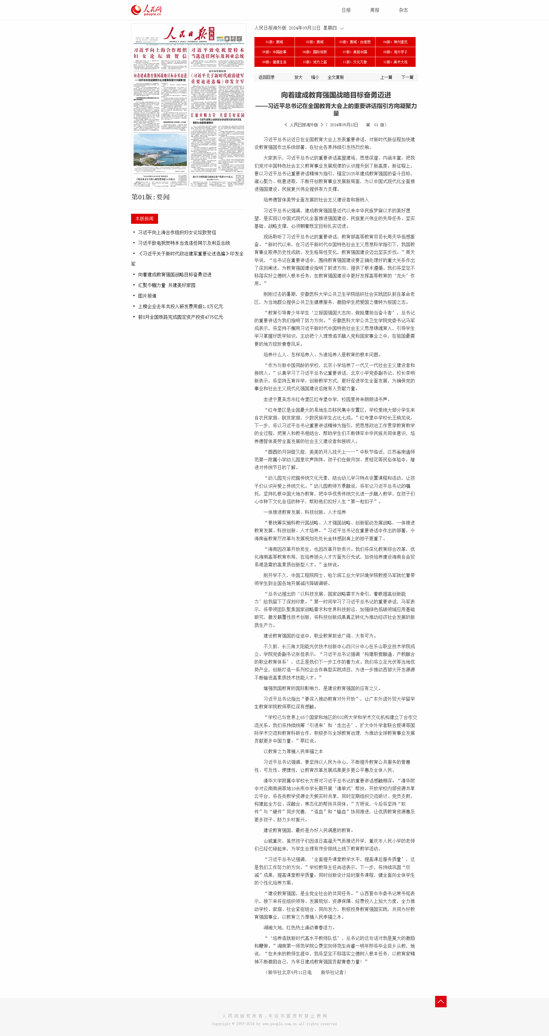 人民日报海外版:向着建成教育强国战略目标奋勇迈进——习近平总书记在全国教育大会上