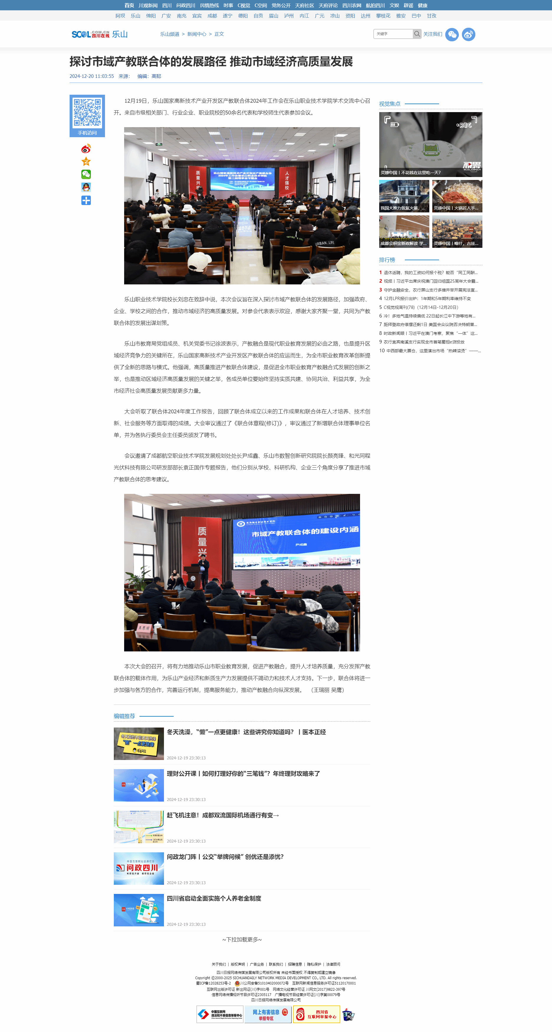 乐山新闻网:乐山国家高新技术产业开发区产教联合体2024年工作会在学校召开
