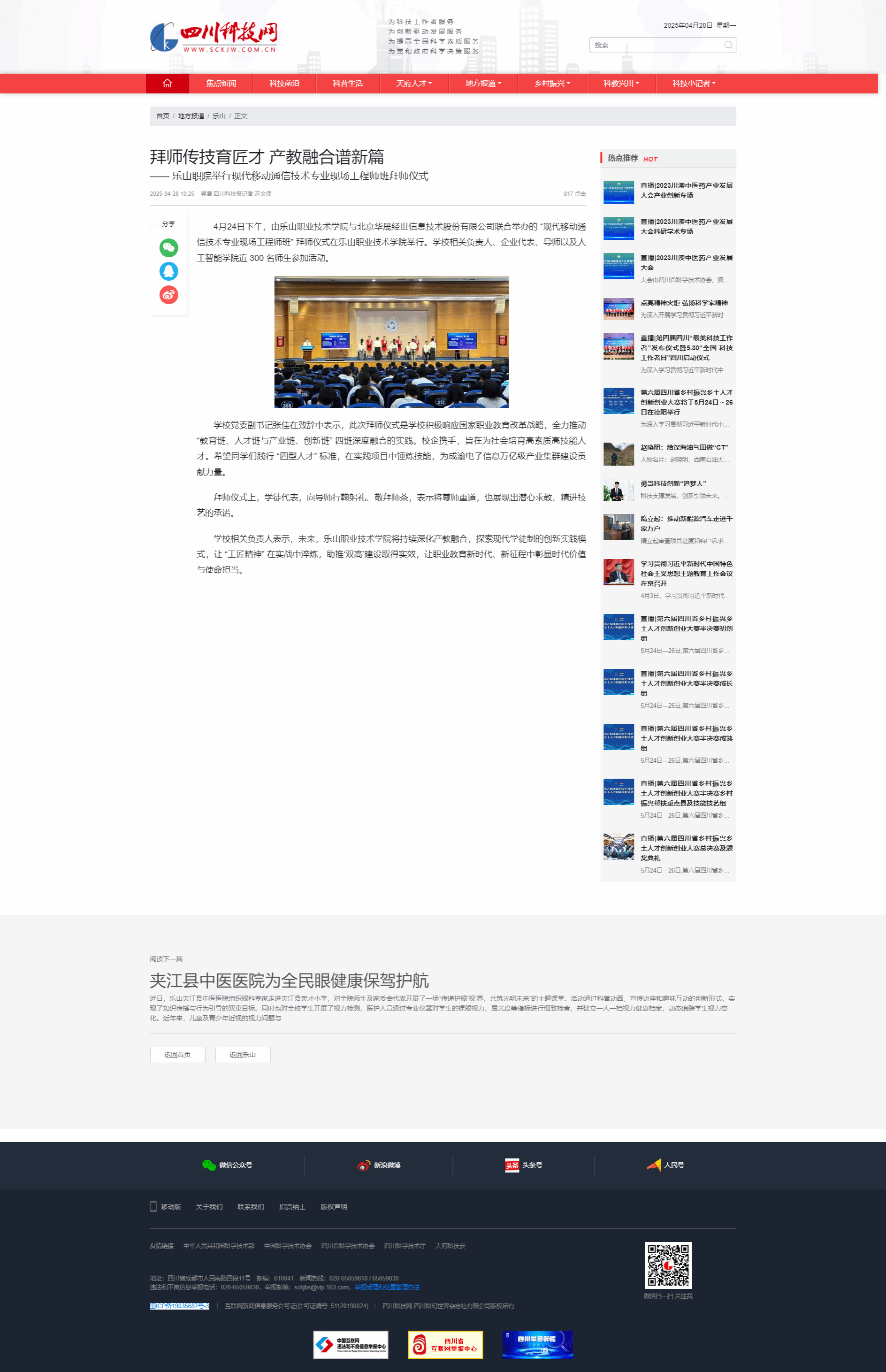 四川科技网:拜师传技育匠才 产教融合谱新篇