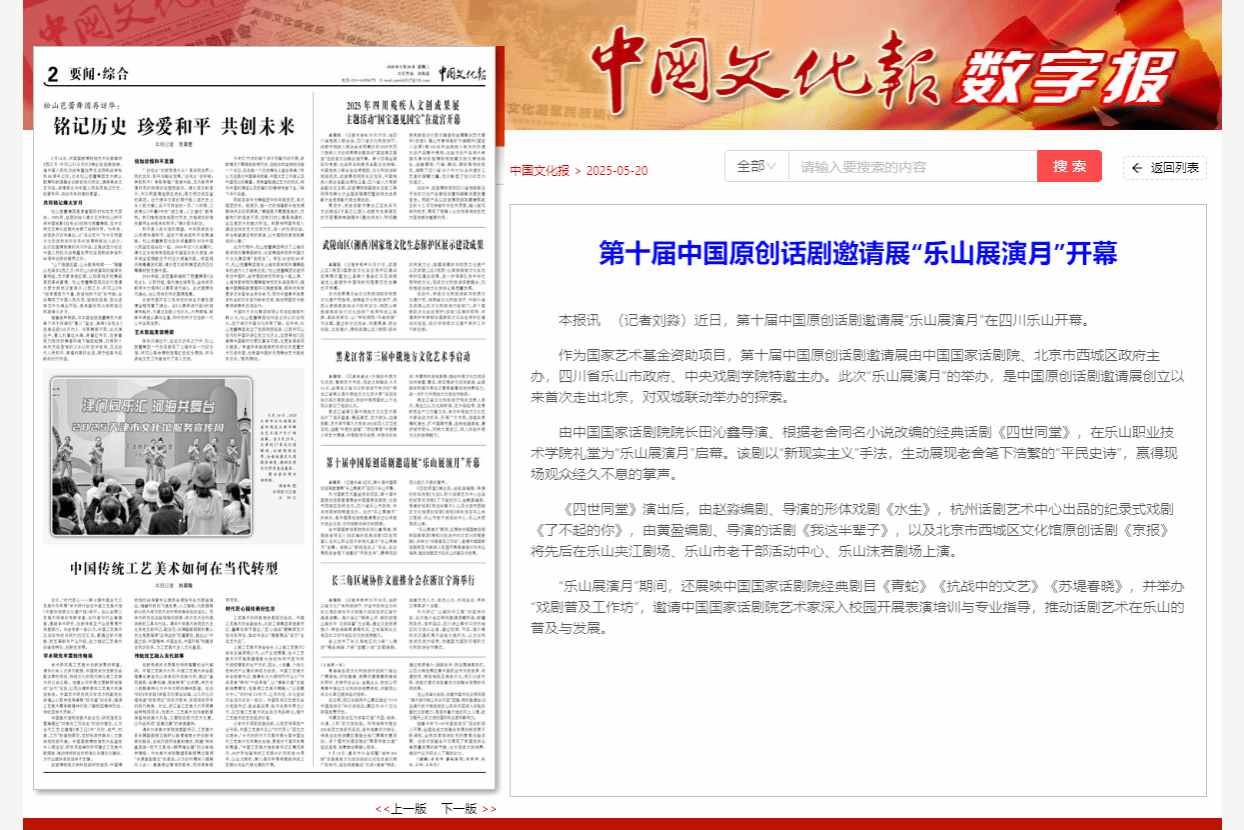 中国文化报:第十届中国原创话剧邀请展“乐山展演月”开幕