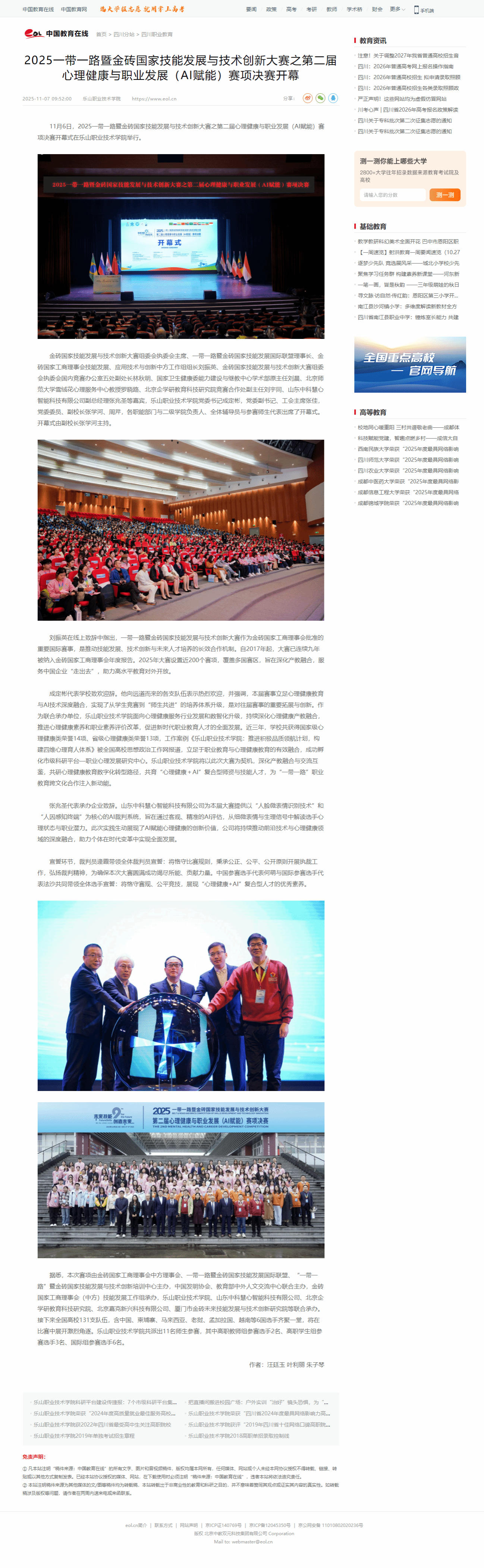 中国教育在线:2025一带一路暨金砖国家技能发展与技术创新大赛之第二届心理健康与职业发展(AI赋能)赛项决赛开幕