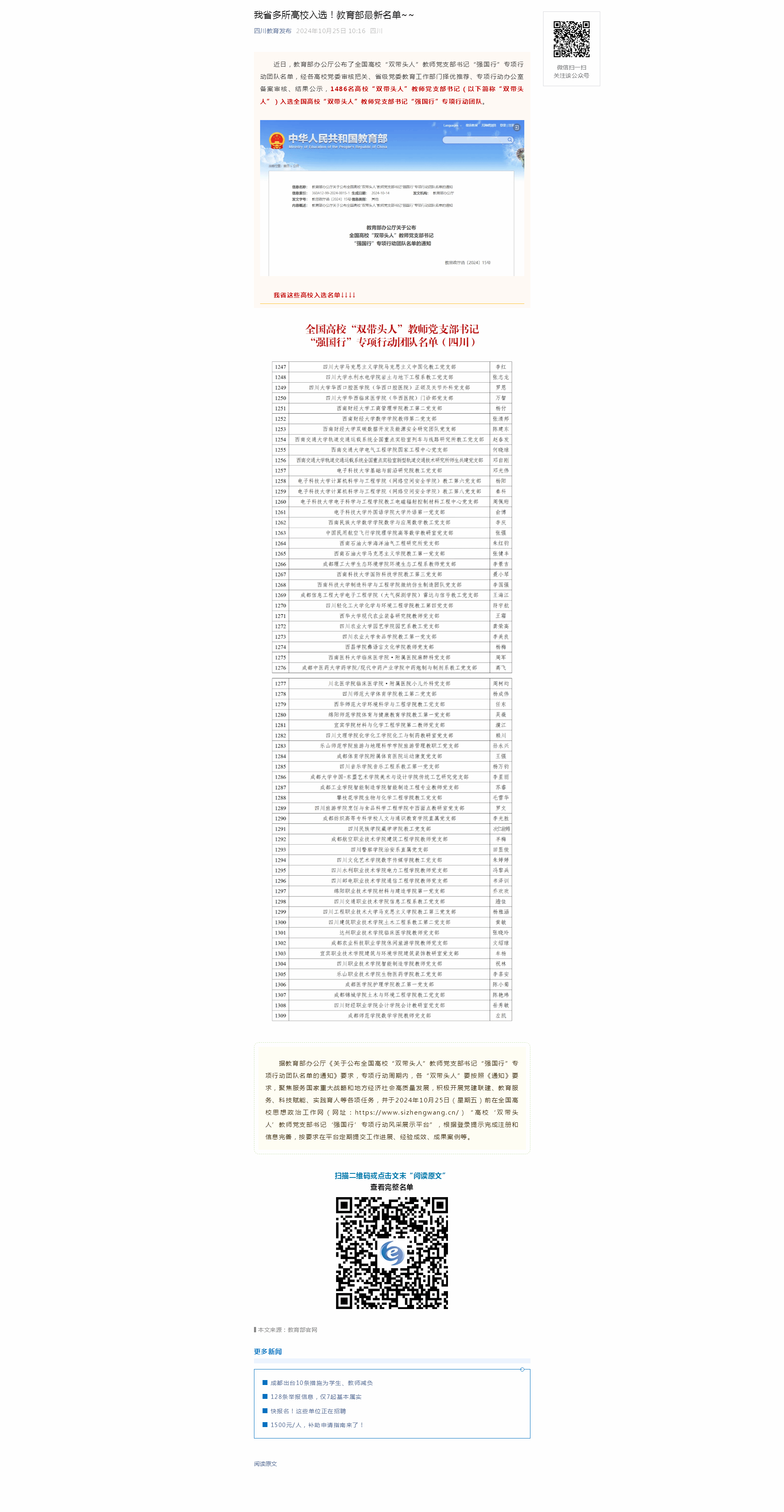 四川教育发布:我省多所高校入选!教育部最新名单~~