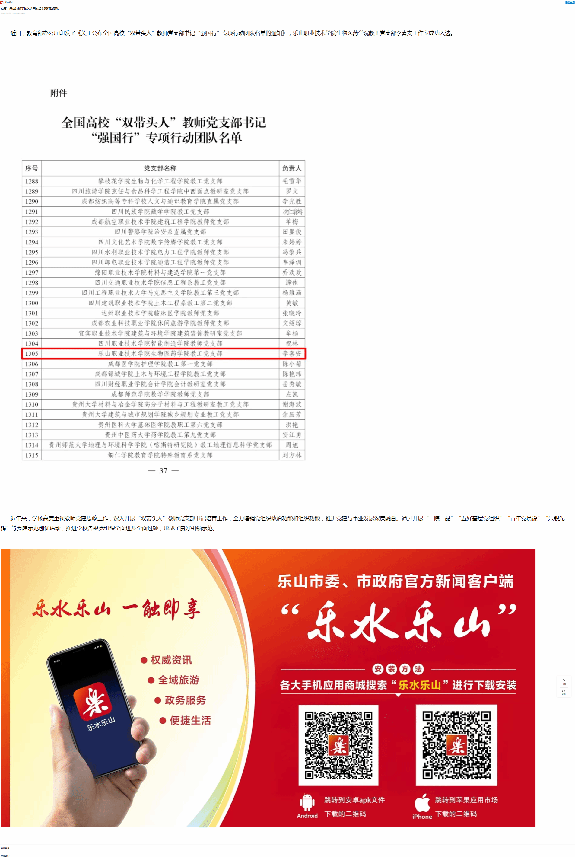 乐水乐山:点赞!乐山这所学校入选国家级专项行动团队