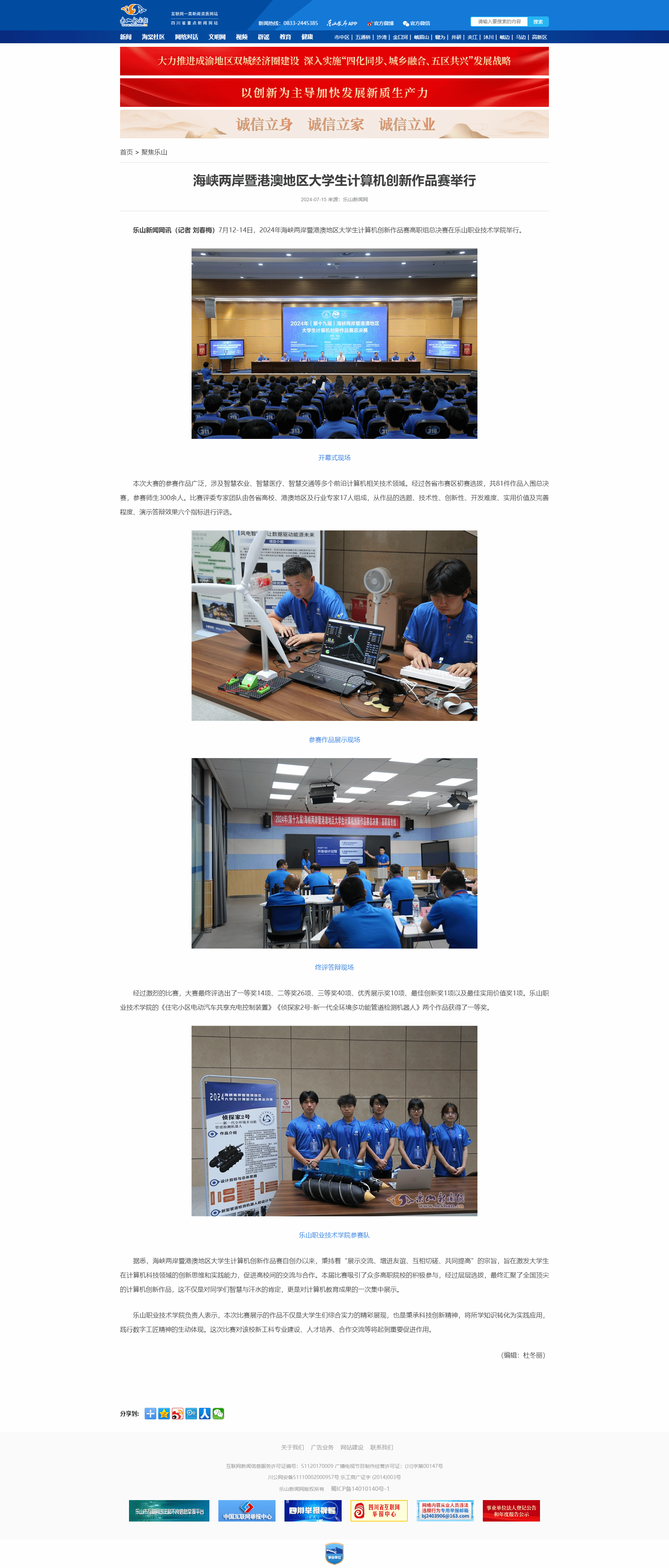 乐山新闻网:海峡两岸暨港澳地区大学生计算机创新作品赛举行