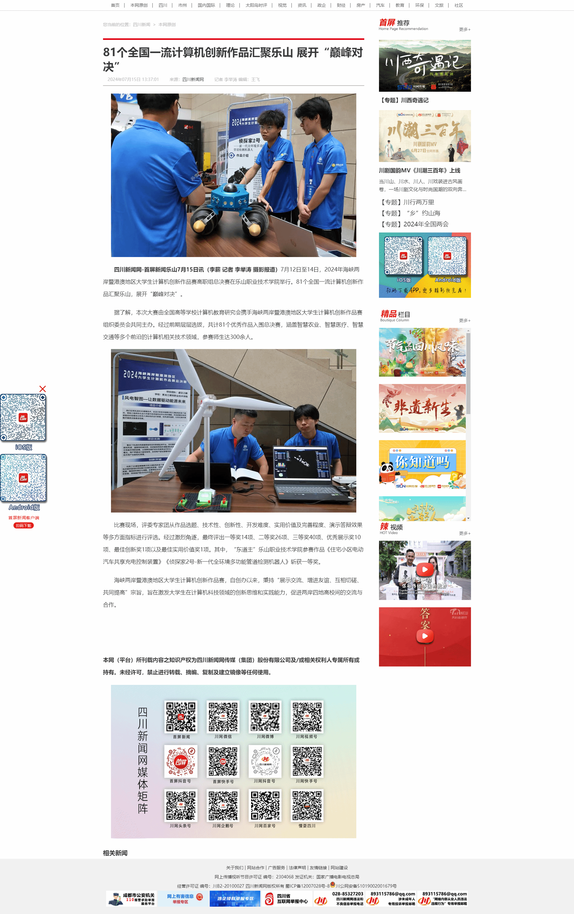 四川新闻网:81个全国一流计算机创新作品汇聚乐山 展开“巅峰对决”