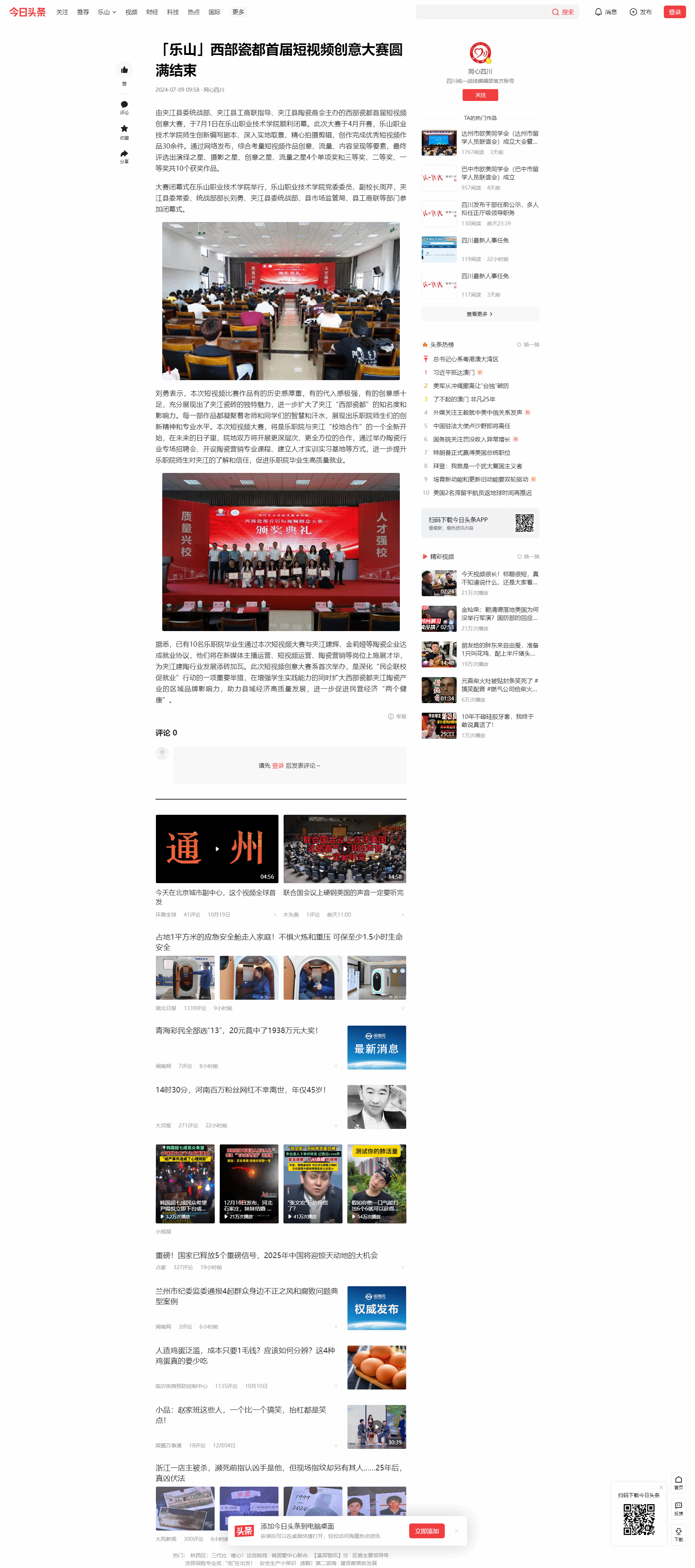 今日头条:「乐山」西部瓷都首届短视频创意大赛圆满结束