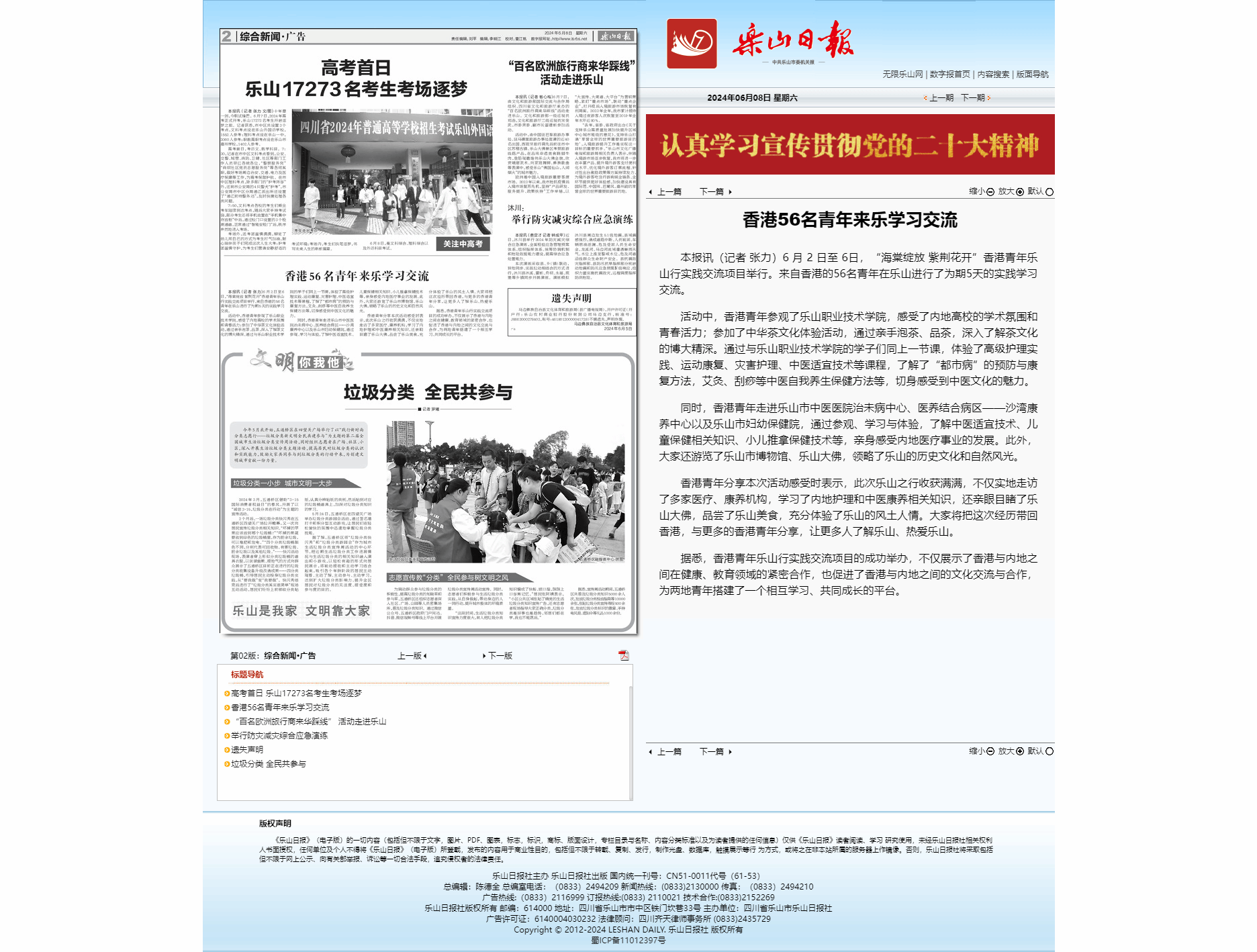 《乐山日报》香港56名青年来乐学习交流