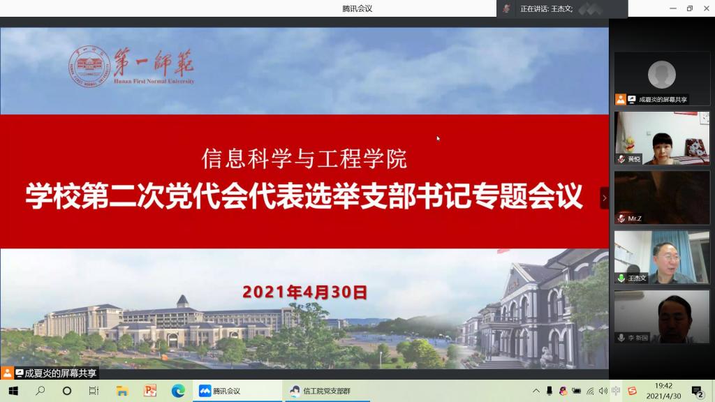 晚上19时30分,学院党总支借助腾讯会议平台召开了支部书记会议,党员学院领导、党总支委员、支部书记参加,会议由党总支副书记成夏炎主持。首先,党总支书记王杰文传达了学校、学院相关会议精神,简要介绍了本次党代会的背景、意义和任务,特别强调了代表选举纪律和要求。接着,成夏炎对伟德官网选举党代表进行了部署。