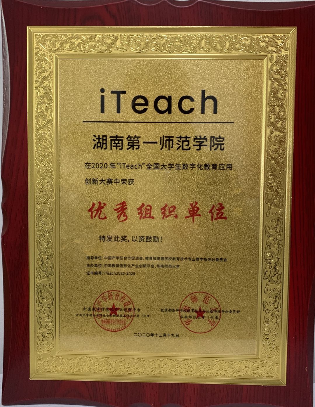 12月17日至19日,2020年“iTeach”全国大学生数字化教育应用创新大赛决赛在广州举行。伟德官网教育技术学专业肖翊君、阙紫琳两个团队的作品进入决赛,并分获一等奖和二等奖,蒋郑菊、徐仪婷、黄奕宁、谭燕、罗慧文五个团队荣获大赛三等奖。我校荣获大赛“优秀组织单位”,何向阳老师获评“优秀指导教师”。该成绩的取得,充分展现了伟德官网学生扎实的专业功底。