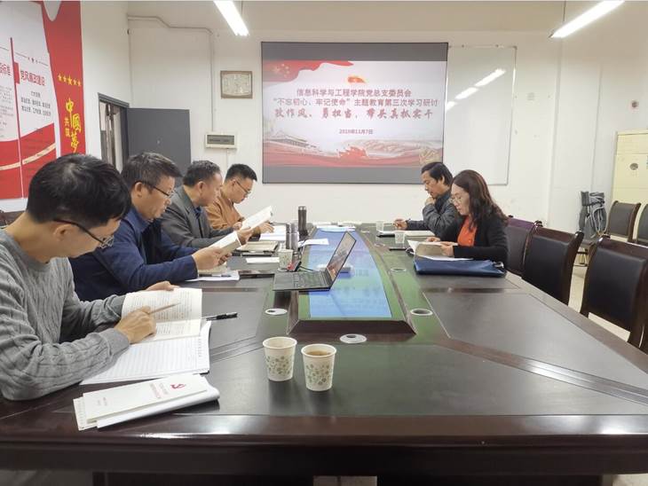 会上,首先由王杰文领学了中共中央国务院印发的《新时代公民道德建设实施纲要》和《习近平关于“不忘初心、牢记使命”论述摘编》之“坚决整治形式主义、官僚主义,加强真抓实干的作风建设”部分。在学院党总支副书记成夏炎作了“改作风、勇担当,带头真抓实干”的主题发言之后,王杰文、田祖伟先后结合自身情况和工作实际谈了学习体会。