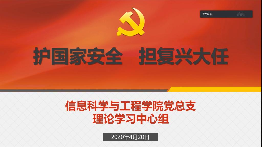 4月20日上午,伟德官网党总支理论学习中心组通过腾讯会议系统线上开展主题为“护国家安全,担复兴大任”的集中学习。会议由学院党总支书记王杰文主持。