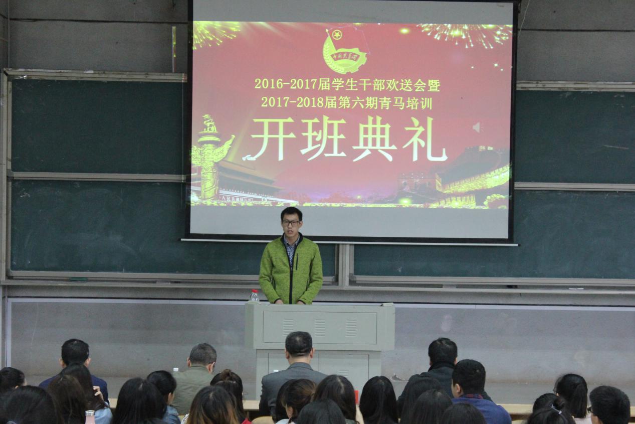 党总支副书记罗祥云介绍了青马的课程设置。他充分肯定了上届学生干部为学院学生管理工作作出的努力和贡献,同时希望现任学生干部及助干勇于承担使命,各司其职,在接下来的工作中改革创新,为学院的建设发展奉献力量。希望所有学员珍惜培训机会,在学习过程中遵守纪律,注重思想素质的提升。