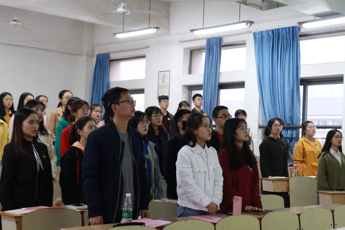 大会在庄严的《国际歌》中拉开帷幕,33名入党积极分子先后上台汇报,阐述其近期的思想动态以及学习情况,表达自己对党诚挚的向往和加入党组织的坚定决心。