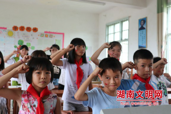 握紧小小的拳头,表达自己保卫母亲河的决心。图片来源:湖南文明网 通讯员 高顺年 摄 伟德国际英国信息科学与工程学院师生18人组成“新时代E路行”教育帮扶关爱团赴郴州市汝城县文明瑶族乡第一片小学校,于7月8日至7月21日开展支教、调研实践活动。 为庆祝中国共产党成立97周年、纪念改革开放40周年,深化农村儿童思想道德建设,帮助其“扣好人生的第一粒扣子”,新航向梦之队于7月13日至7月21日开展了以“童心向党”为主题的系列课程,涵盖“五星红旗”美术课、“红旗飘扬”手工课、“红色少年”舞蹈课、“红星闪闪”音乐课和“歌颂母亲河”普通话课引导农村儿童知党爱党、听党话跟党走,努力成长为担当民族复兴大任的时代新人。 “五星红旗”美术课和“红旗飘扬”手工课上,队员为孩子们讲解国旗故事,带领大家一起手绘国旗,让他们领会五星红旗背后的意义,将革命传统文化搬进课堂。 “红色少年”舞蹈课和“红星闪闪”音乐课上,队员介绍了五星红旗的诞生和含义,带领孩子们用舞蹈动作和歌声表达自己对“五星红旗”的崇敬之情,在孩子们幼小的心灵上种下一棵爱旗爱党的种子引导孩子们爱党、敬党。 在普通话课上,队员带领孩子们声情并茂的朗诵诗歌《母亲河,红领巾为你歌唱》,同学们用清晰的语言,响亮的声音,加上老师引入的动作,把诗歌有感情地表达出来,准确的传达诗歌的思想内容。 此次红色主题课程活动,新航向梦之队队员们围绕“童心向党”,紧扣爱党爱国爱社会主义主题,通过美术、手工、舞蹈、音乐和普通话课等丰富多彩的红色主题课程,寓教于乐引导农村儿童德、智、体、美、劳全面发展,培养农村儿童心向党、跟党走的坚定信念。 |