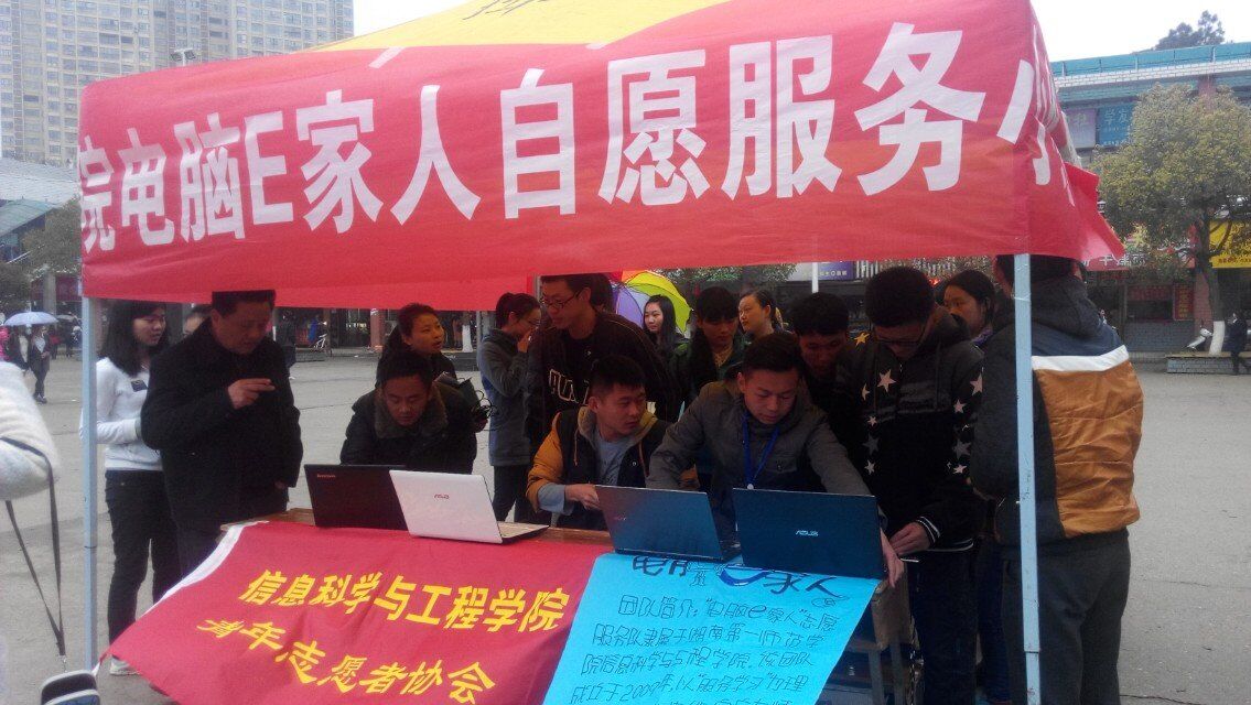 继3月15日开展志愿者参观雷锋纪念馆活动后,伟德官网电脑E家人志愿服务小组配合青志协于3月17——18日在校园文化广场开展了为期两天的“电脑e家人、窗口学雷峰、服务暖人心”的志愿服务活动。活动面向全体学生提供计算机操作系统故障诊断与处理、计算机硬件配置、计算机常用软件装载、网络设置、系统维护等服务项目。活动期间共处理72台计算机问题,给同学们带来实实在在的效益。伟德官网党总支张如健副书记也亲临活动现场,给志愿者们提供专业的指导,并对他们学雷锋的精神给予了充分肯定,李豪杰老师还参与了具体的计算机维护服务。