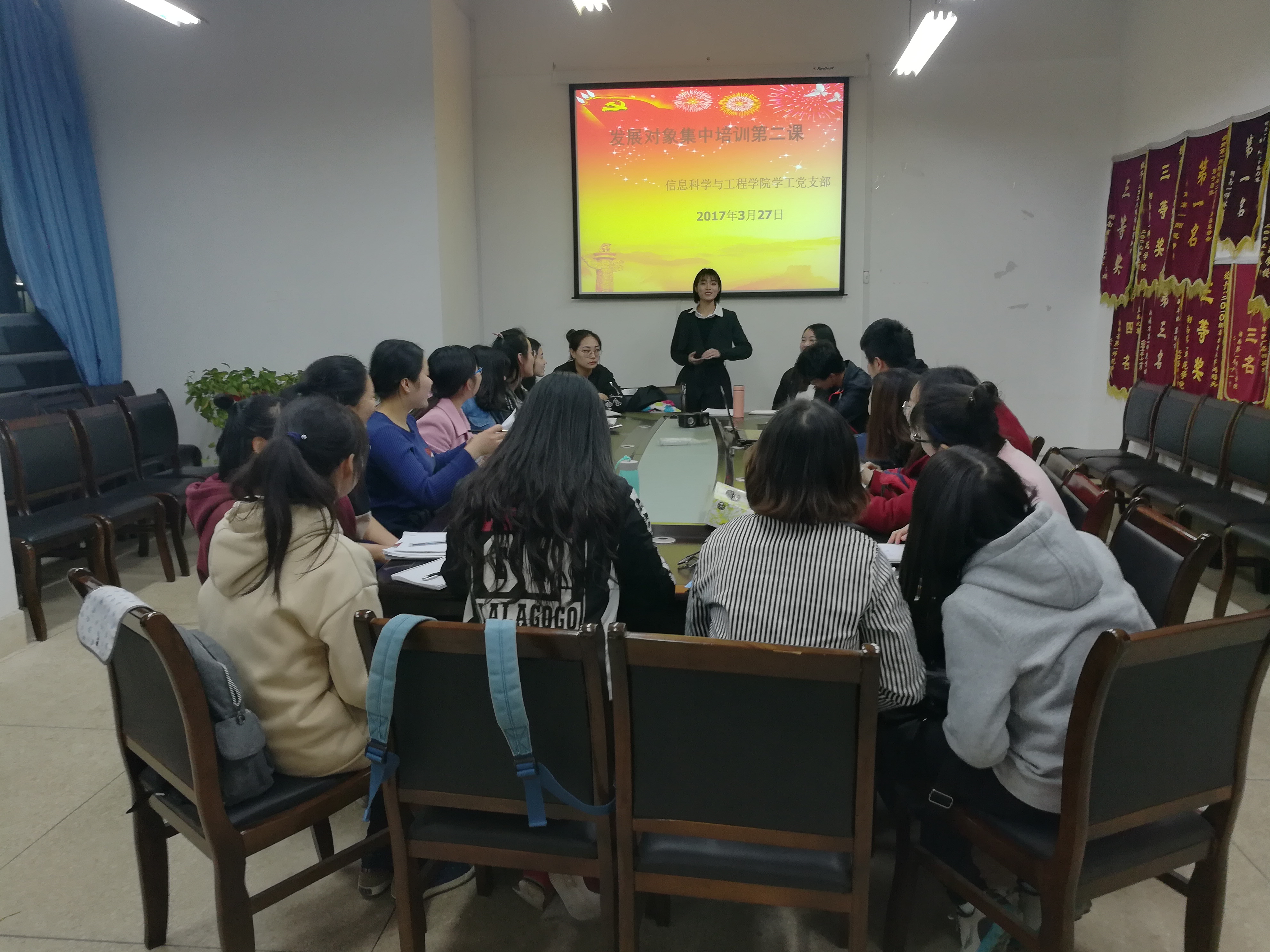 培训分别采取微课辅导、讨论交流、自学、撰写学习心得等形式进行。几天时间内18名发展对象主要学习了《中国共产党章程》、《关于新形势下党内政治生活的若干准则》及习近平总书记有关党建与党员管理的重要讲话精神,还围绕“2016年感动中国十大人物”新闻事迹展开了讨论。培训会上,学工党支部书记关红儒对党员发展对象提出了相应要求:一是紧跟形势,政治理论学习不放松,做政治上的明白人;二是立足本职,搞好专业知识学习,做学业上的领头人;三是严格要求,发挥模范作用,为争做合格党员打下基础。