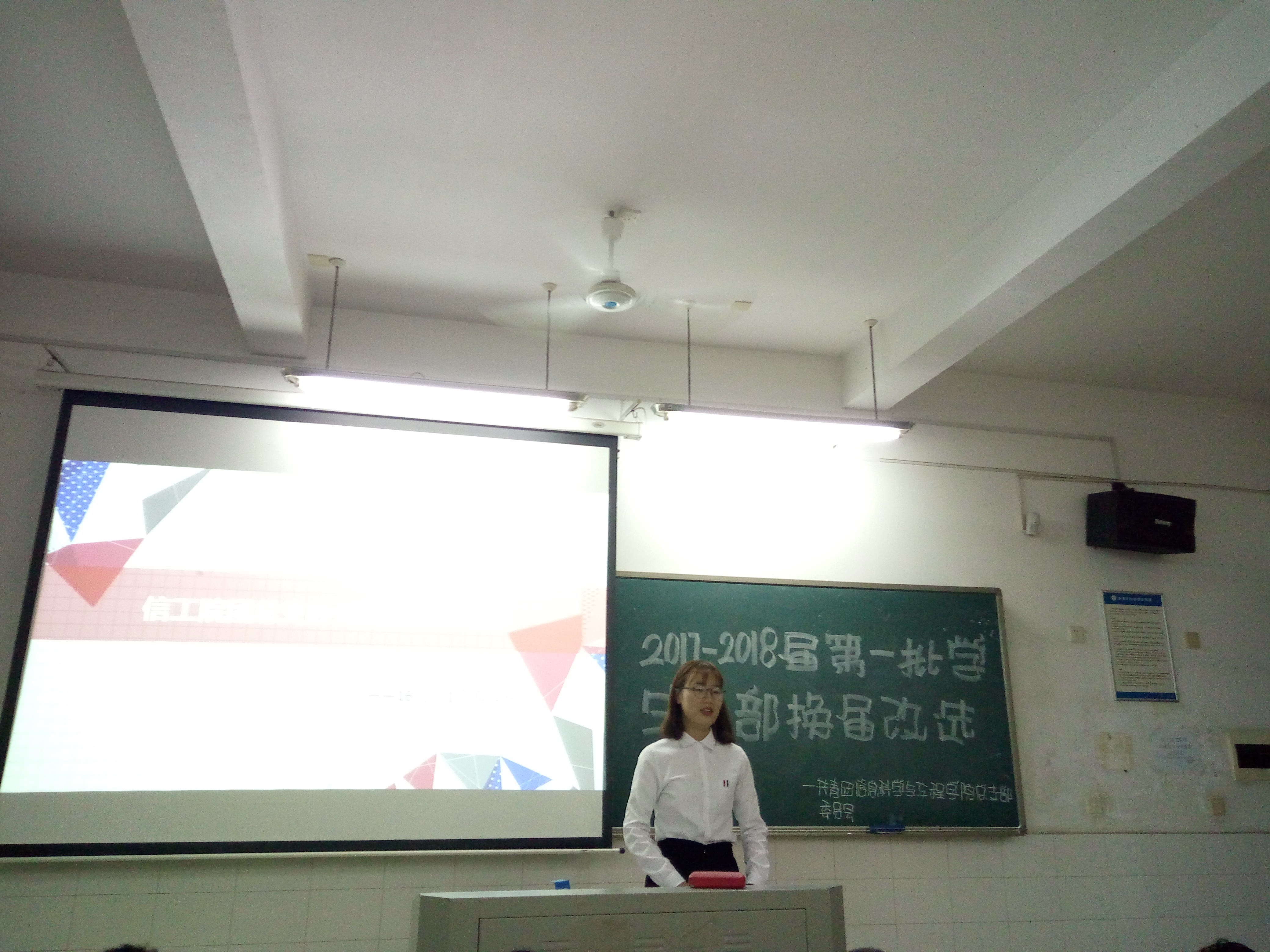 第一批干部复选是学院团总支副书记、团总支办公室、学生会主席部、青志协主席部职位的竞选。竞选分为两大流程,首先是竞职者发表竞职演讲,阐述对工作岗位的认识和工作设想等;接着是老师、核心干部对竞选者现场提问。在竞选过程中,竞职者表现得自信大方、热情洋溢,言语之中饱含对对信工院学生干部团队、团学工作的热爱。