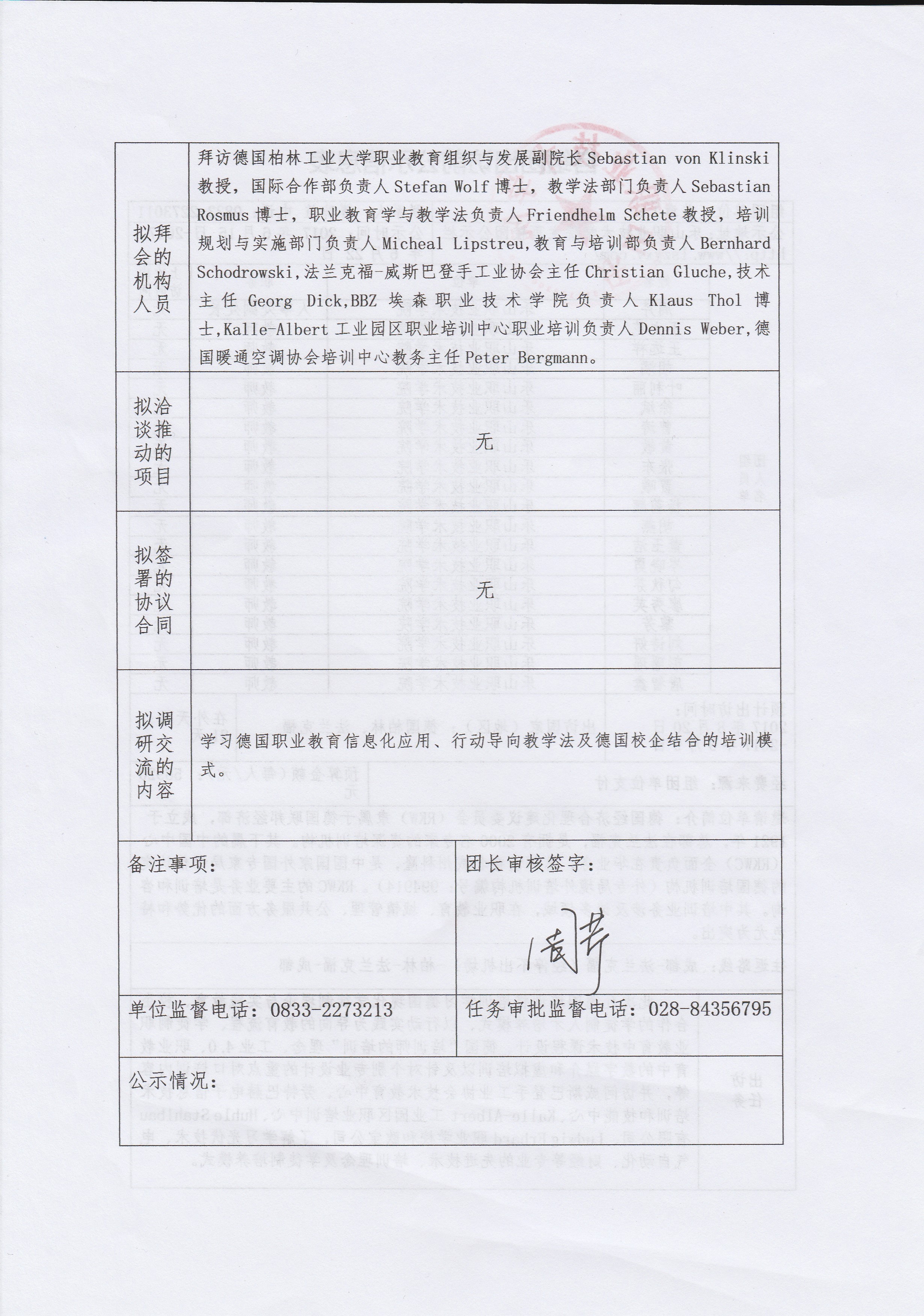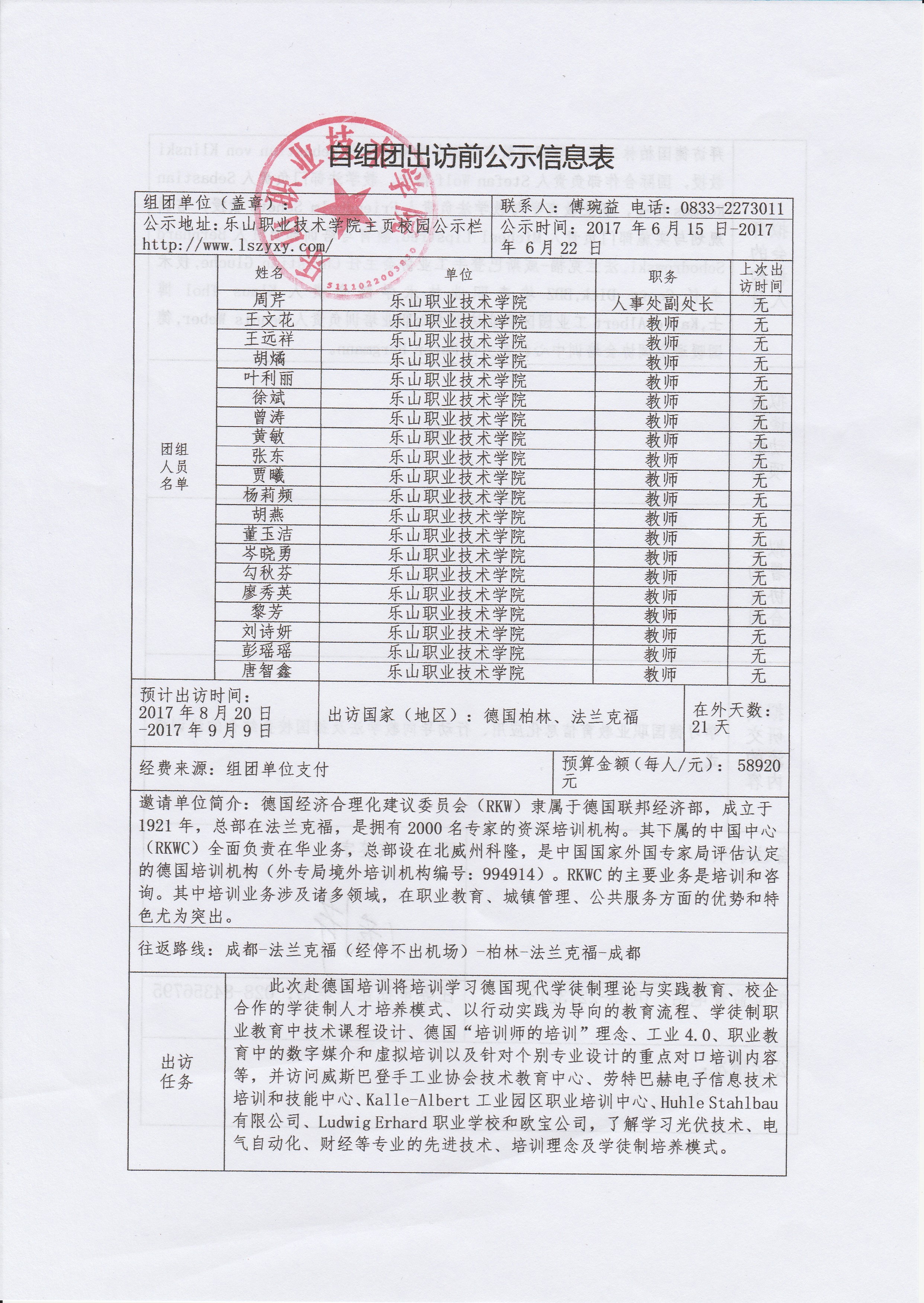 自组团出访前公示信息表
