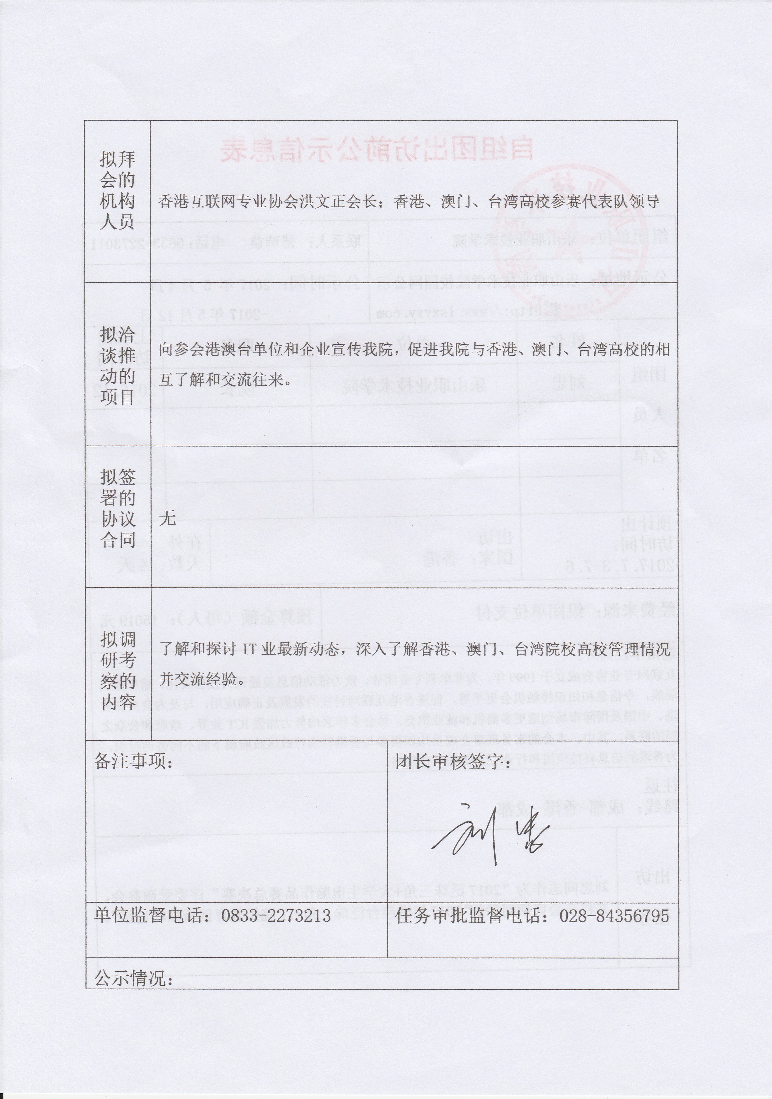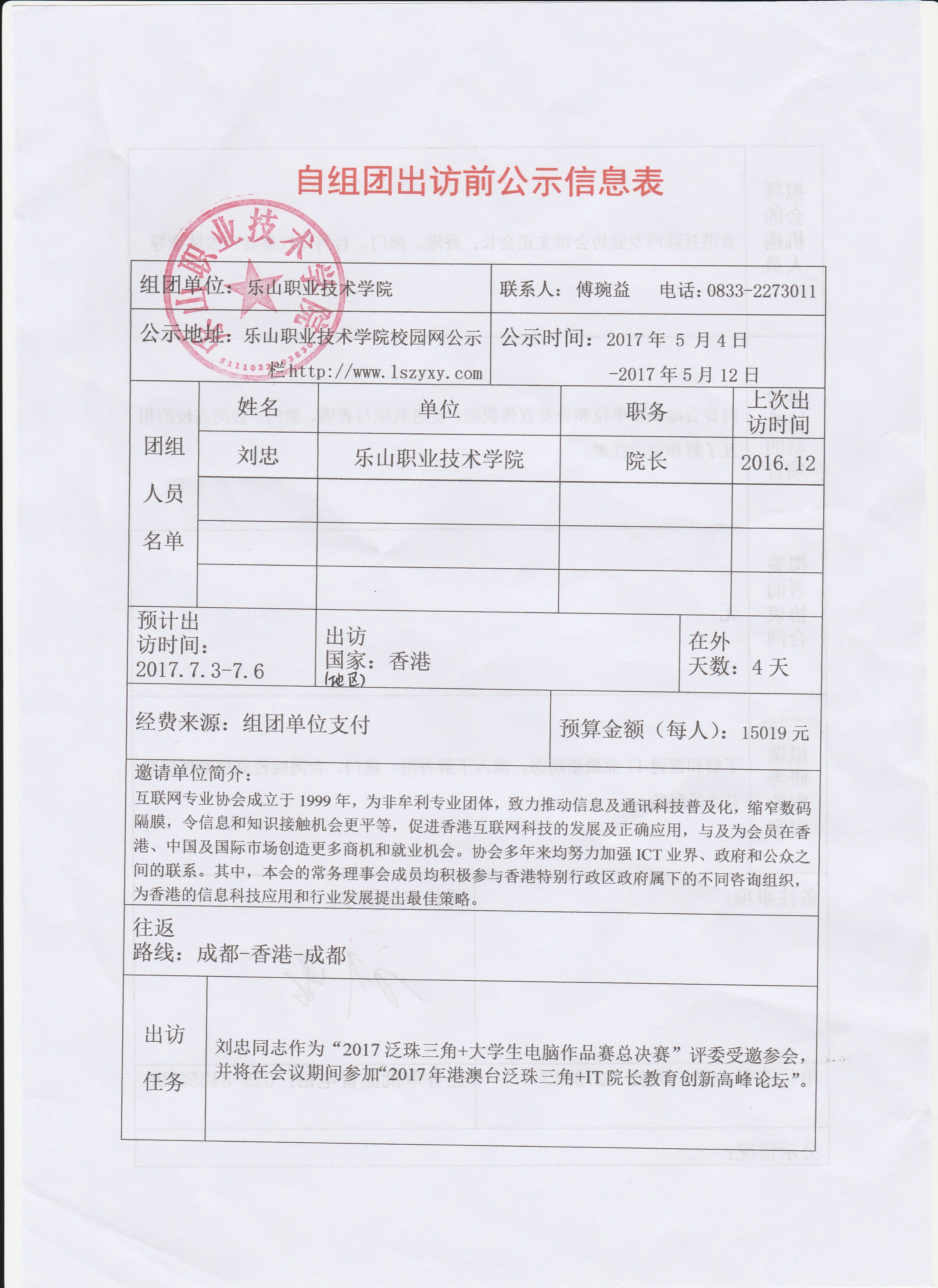 自组团出访前信息公示表