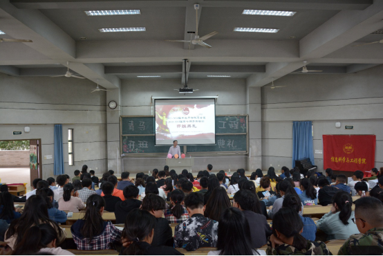 (通讯员 丁姣 邓力超 陈思迁)2018年10月8日12点30分,信息科学与工程学院2017-2018届学生干部欢送会暨第七期青马培训开班典礼在润寰南105隆重举行。学院党总支书记王杰文,党总支副书记易利,学工办关红儒、唐瑞鸿、叶晶出席典礼,2017-2018届学生干部、2018-2019届学生干部及实习干事共计230余人参加典礼,典礼由唐瑞鸿主持。