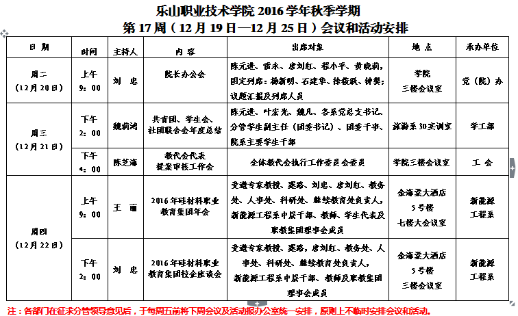 第17周(12月19日—12月25日)会议和活动安排