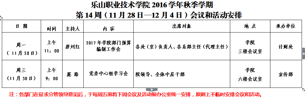 第14周(11月28日—12月4日)会议和活动安排