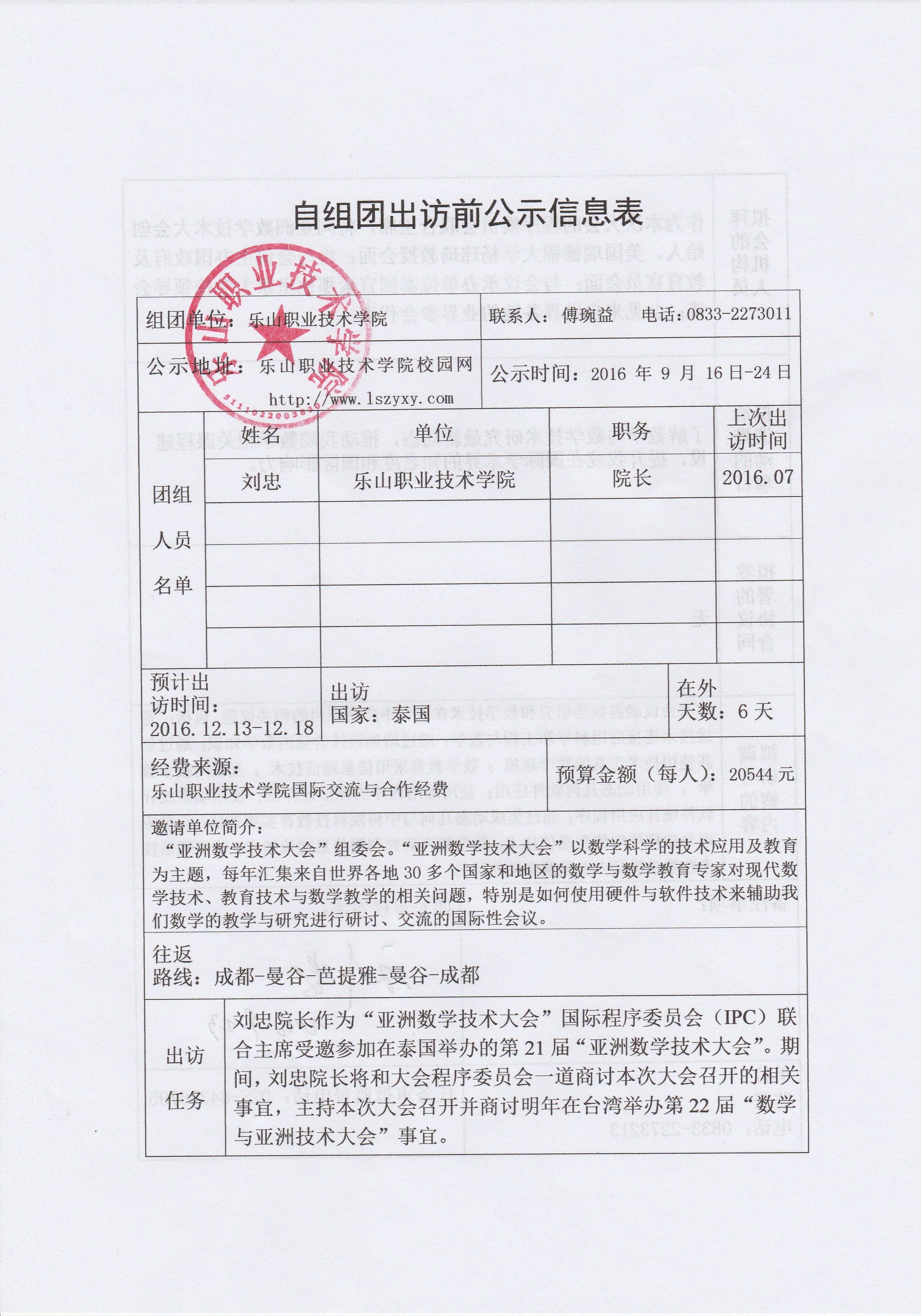 泰国自组团出访前公示